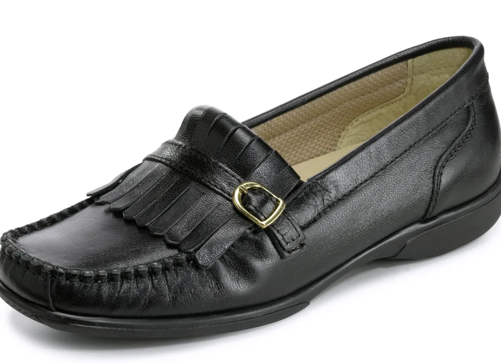 Klassische Slipper von ELENA EDEN in Mokassin-Machart, aus Chevreau-Nappaleder mit Zierlasche und seitlichen Gummizügen: in Weite H, Textilfutter, herausnehmbares Lederfußbett, superleichte EVA-Riffelsohle sowie 15 mm Keilabsatz
