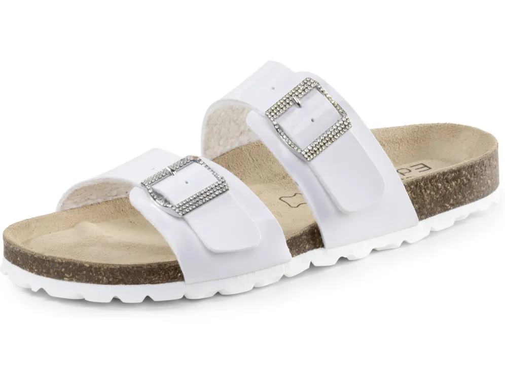ELENA EDEN-Pantolette aus Synthetik, in Weiß aus Lack: Weite H, verstellbare Schließen mit Glitzersteinchen, Futter, Lederfußbett sowie leichte, flache EVA-Profilsohle