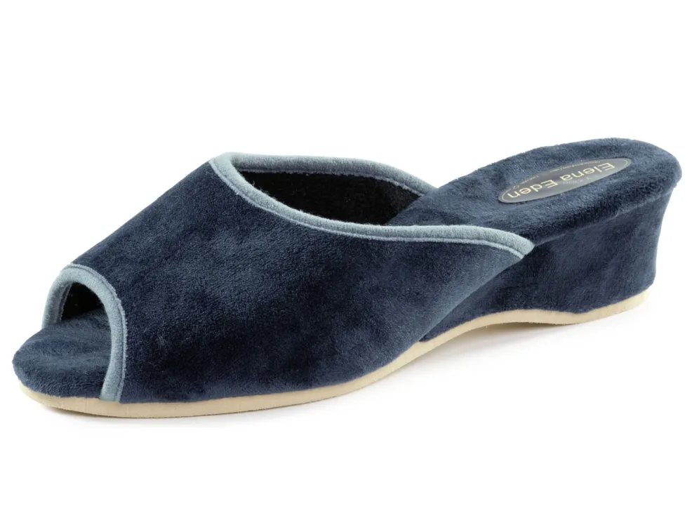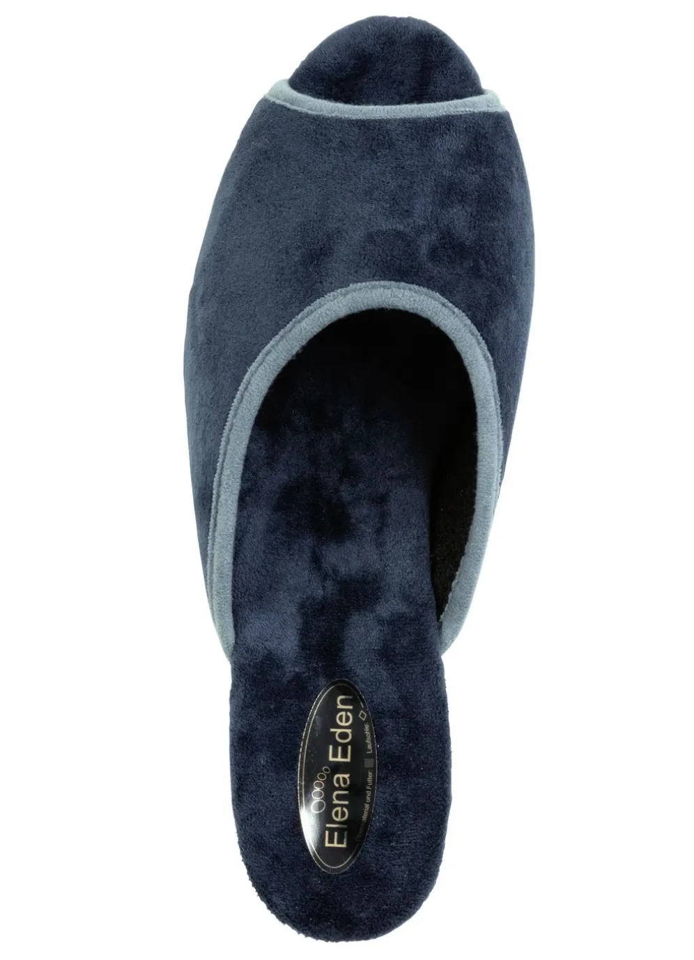 ELENA EDEN Samt-Pantolette mit Kontrast-Einfassung in Blau und in Größe 41.