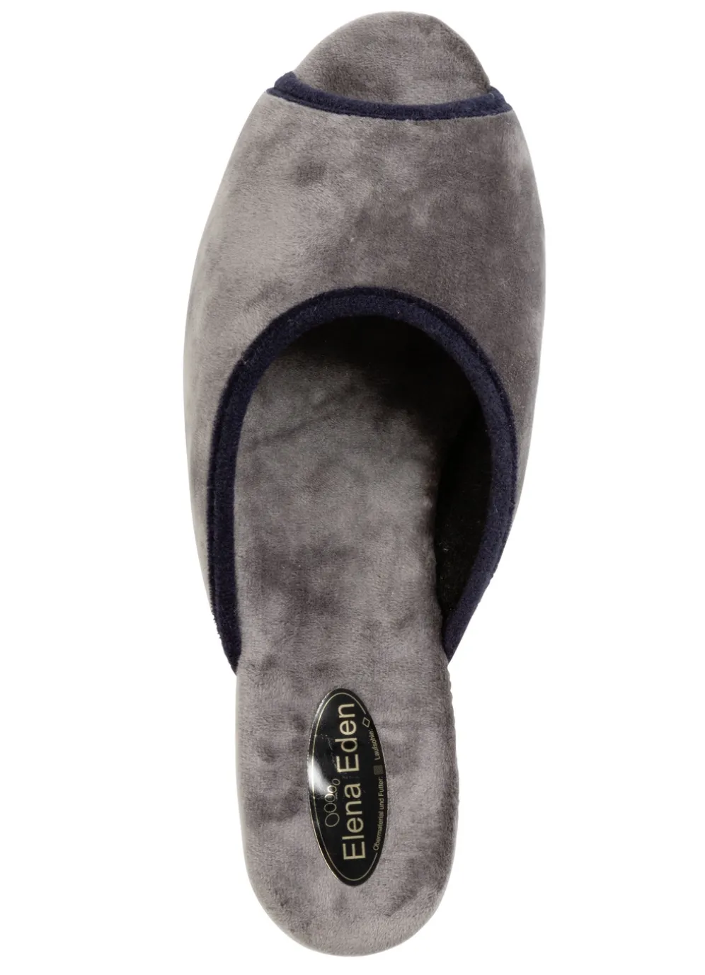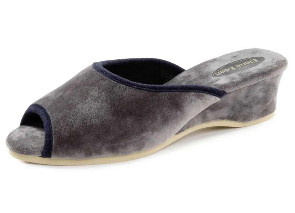 Samt-Pantolette von ELENA EDEN, mit Kontrast-Einfassung: Weite G, Textilfutter, gepolsterte Decksohle, superleichte EVA-Laufsohle sowie 40 mm Keilabsatz
