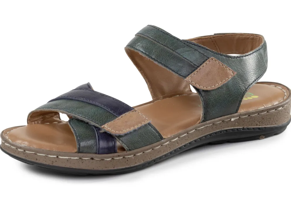 ELENA EDEN-Sandale aus Nappaleder, mit Kontrastbesätzen: Weite G, zwei verstellbare Klettspangen, Lederfutter, weich gepolsterte Lederdecksohle, leichte PU-Laufsohle sowie 15 mm Keilabsatz