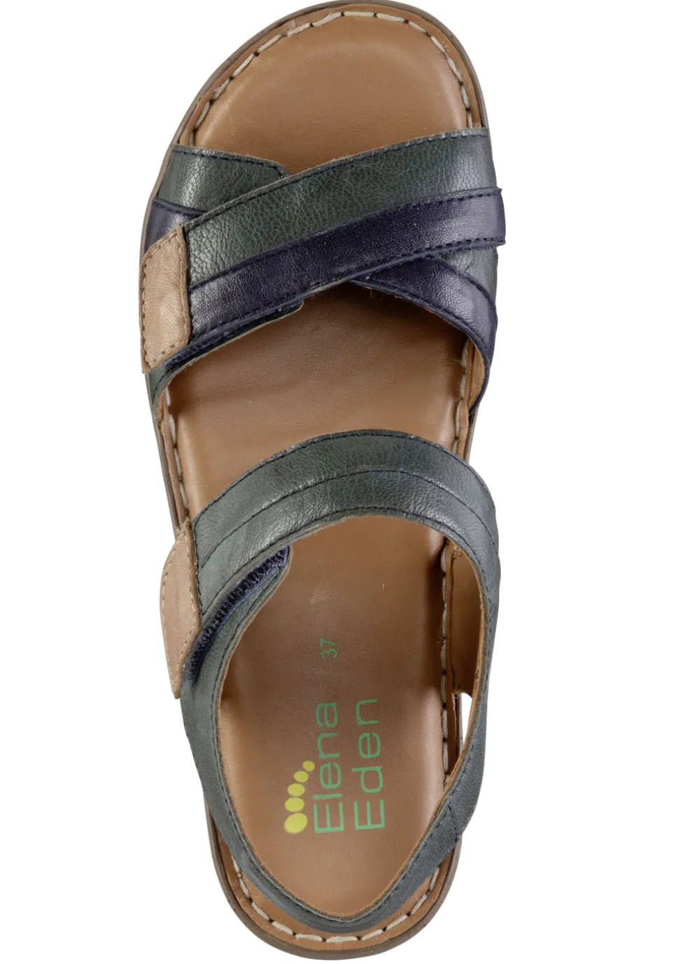 ELENA EDEN Sandale aus Nappaleder mit Kontrastbesätzen in Petrol-Blau und in Größe 36.