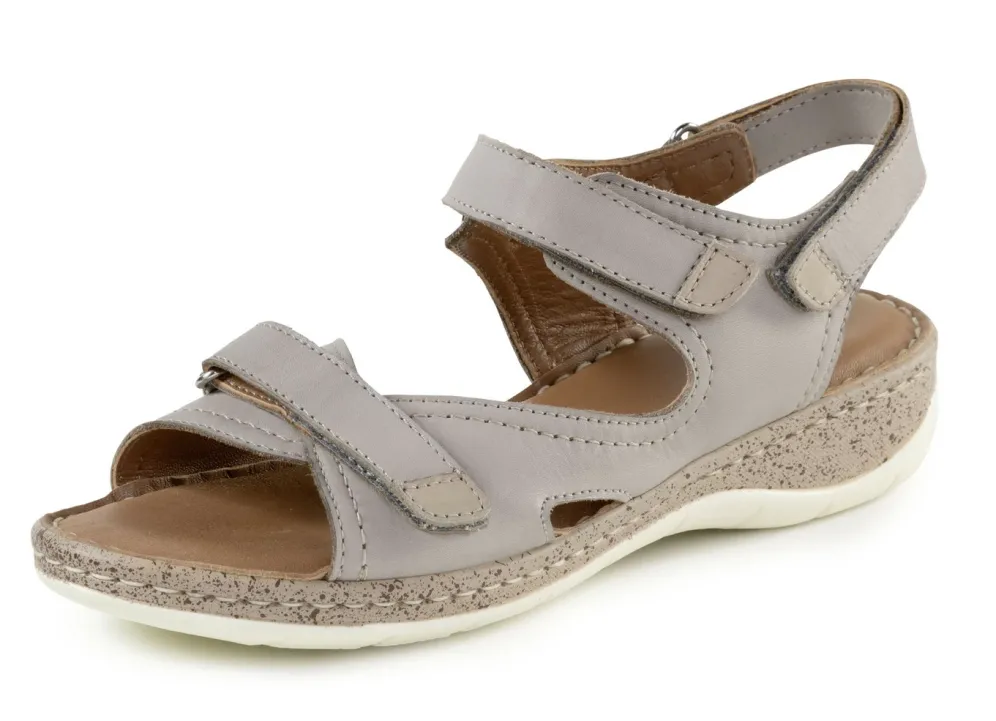 ELENA EDEN-Sandale aus Rind-Nappaleder, mit Kontrastbesätzen: Weite G, drei verstellbare Klettspangen, Lederfutter, weich gepolsterte Lederdecksohle, leichte PU-Laufsohle sowie 20 mm Keilabsatz