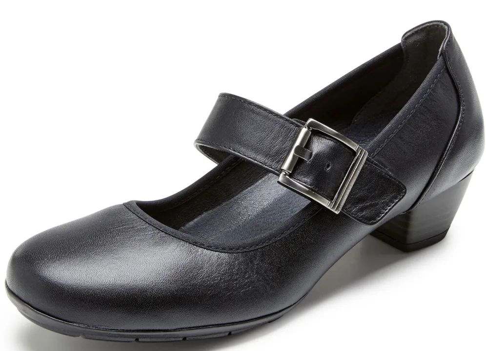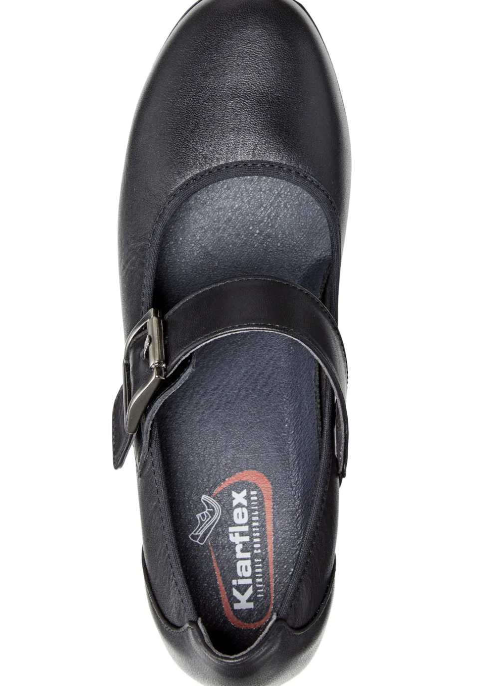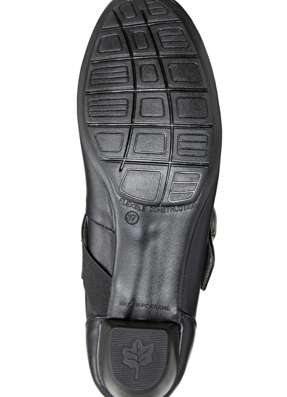 Pumps von ELENA EDEN aus schwarzem Nappaleder, mit verstellbarer Schließe und seitlichem Elastikeinsatz: Weite G, Rundum-Gummizug, Futter, herausnehmbares Fußbett, TR-Profilsohle, 35 mm Absatz