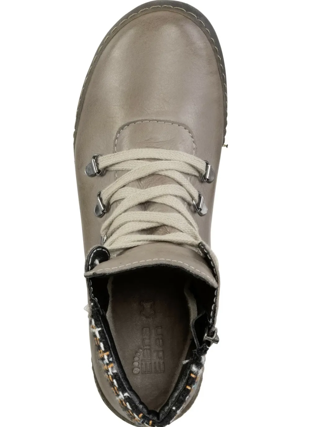 ELENA EDEN Schnür-Bootie mit gepolstertem Textil-Schaftrand in Taupe und in Größe 40.