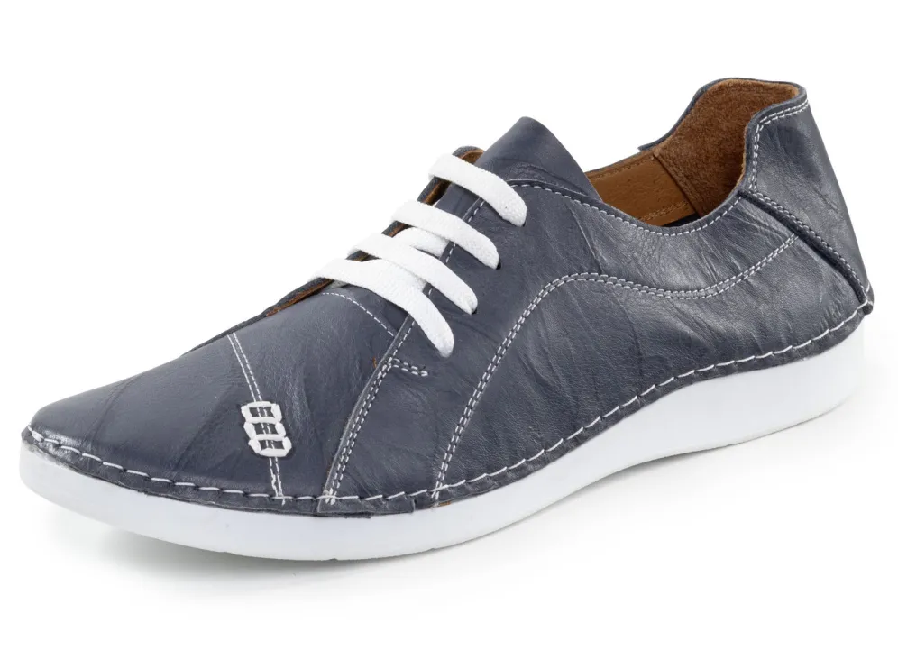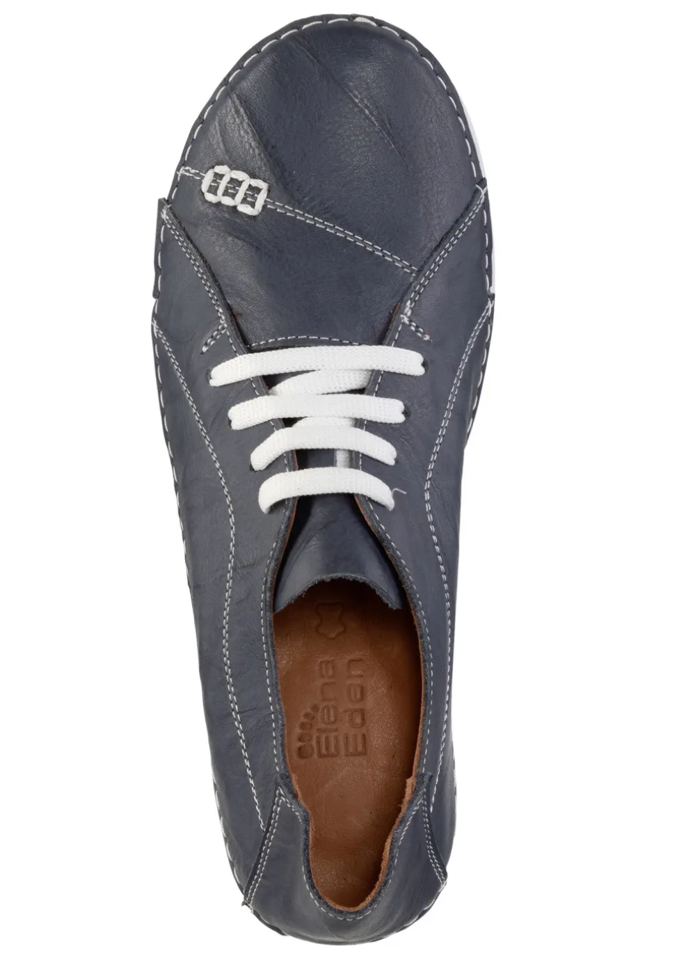 ELENA EDEN Schnürschuh mit Knitter-Struktur und Zier-Nähten in Marine und in Größe 41.