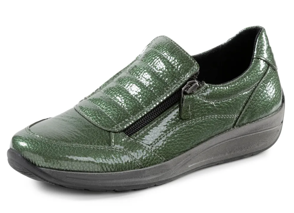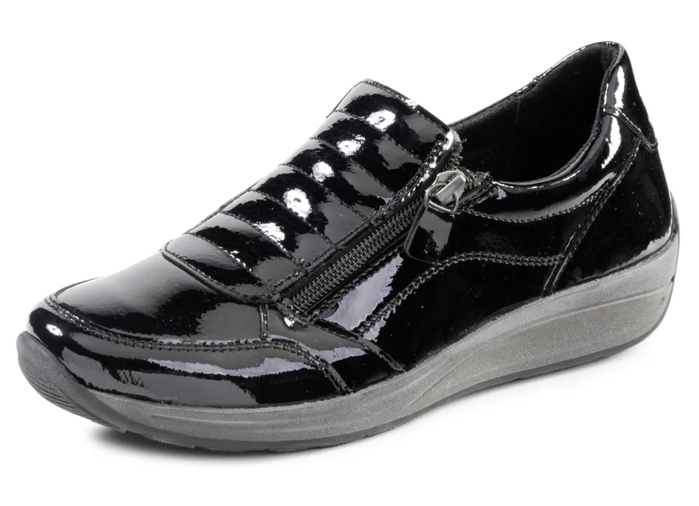 ELENA EDEN-Slipper aus Lackleder, mit zwei seitlichen Reißverschlüssen: Weite G, Textilfutter, herausnehmbares Lederfußbett, leichte TR-Laufsohle sowie 15 mm Keilabsatz