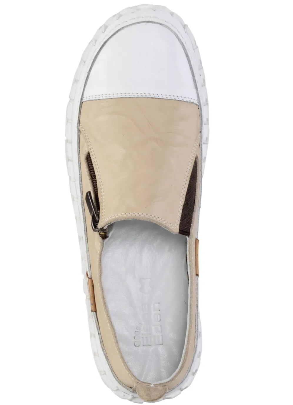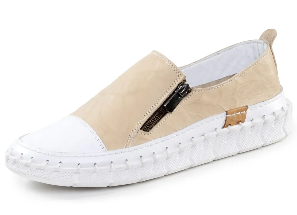 ELENA EDEN-Slipper aus Nappaleder mit Knitterstruktur und seitlichem Reißverschluss: Gummizug, Lederfutter, herausnehmbares Lederfußbett, leichte Synthetik-Laufsohle sowie 10 mm Keilabsatz