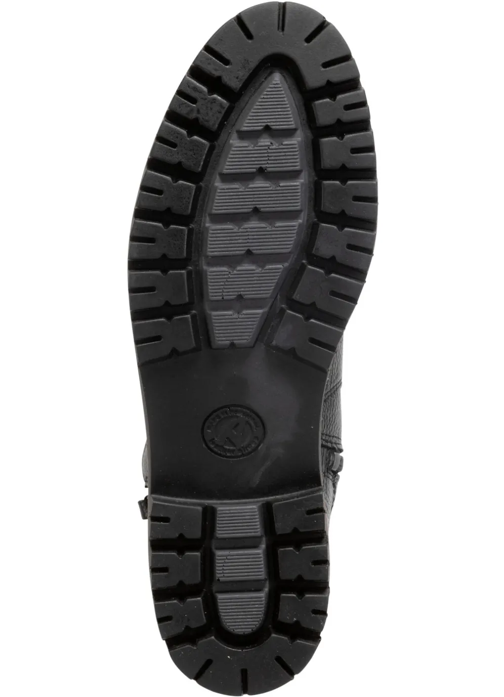 Stiefelette von ELENA EDEN aus Veloursleder, in Schwarz aus genarbtem Nappaleder, mit zwei praktischen Seitenreißverschlüssen: Weite G, wärmendes Textilfutter, herausnehmbares Fußbett, leichte PU-Profilsohle sowie 15 mm Absatz. Schafthöhe ca. 13 cm
