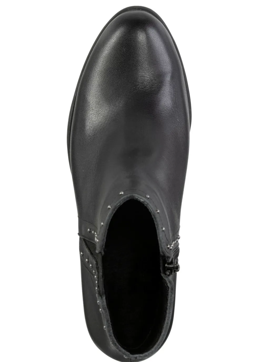 ELENA EDEN-Stiefelette aus Nappaleder, mit angesagten Ziernieten und seitlichem Elastikeinsatz: Innenreißverschluss, wärmendes Textilfutter, leichte Synthetik-Laufsohle sowie 55 mm Absatz. Schafthöhe ca. 12 cm