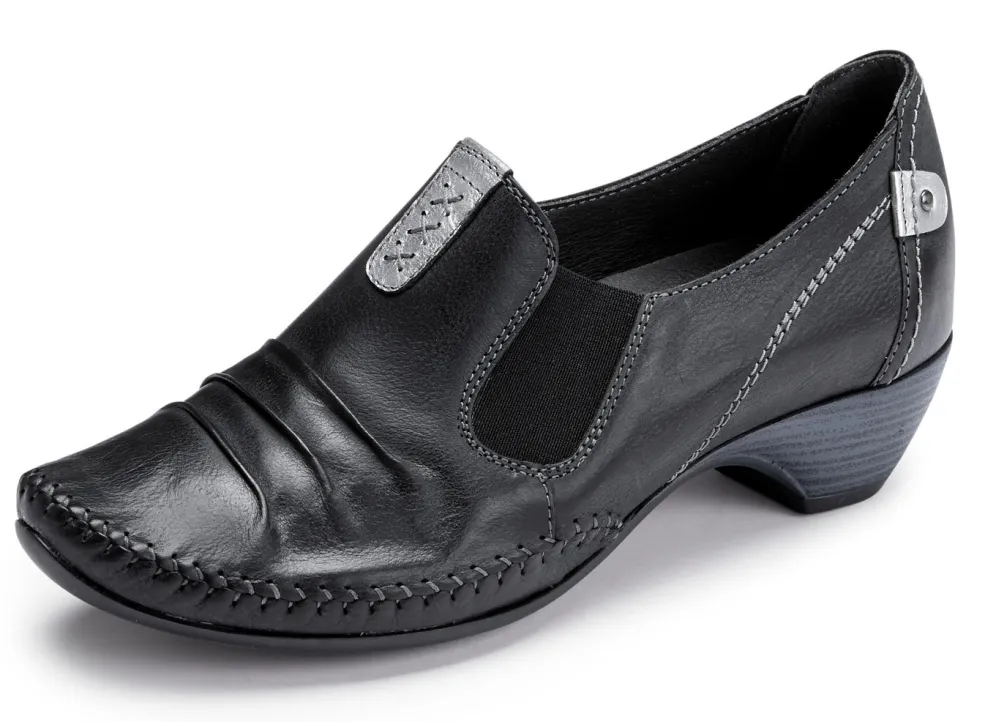 Pumps von ELENA EDEN in Mokassin-Machart, aus Nappaleder mit Metallic-Besätzen und seitlichen Gummizügen: Weite G, Futter, herausnehmbares Fußbett, leichte Synthetik-Laufsohle, 35 mm Absatz