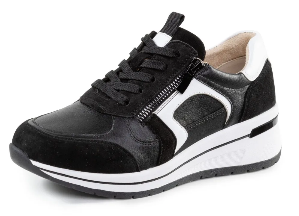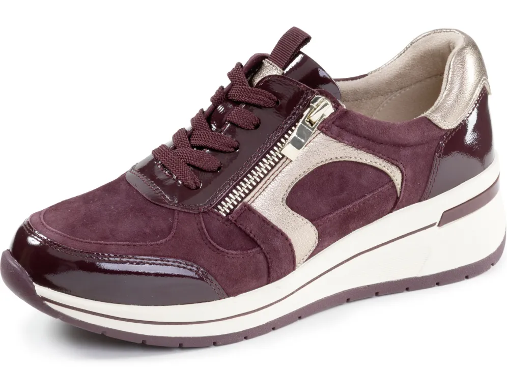 Sneaker von ELENA EDEN, im Material-Mix aus Nappa-, Velours- und Lackleder in diversen Kombinationen: Weite H, Schnürung und Seitenreißverschluss, Textilfutter, herausnehmbares Fußbett, leichte TPR-Profilsohle sowie 35 mm Keilabsatz