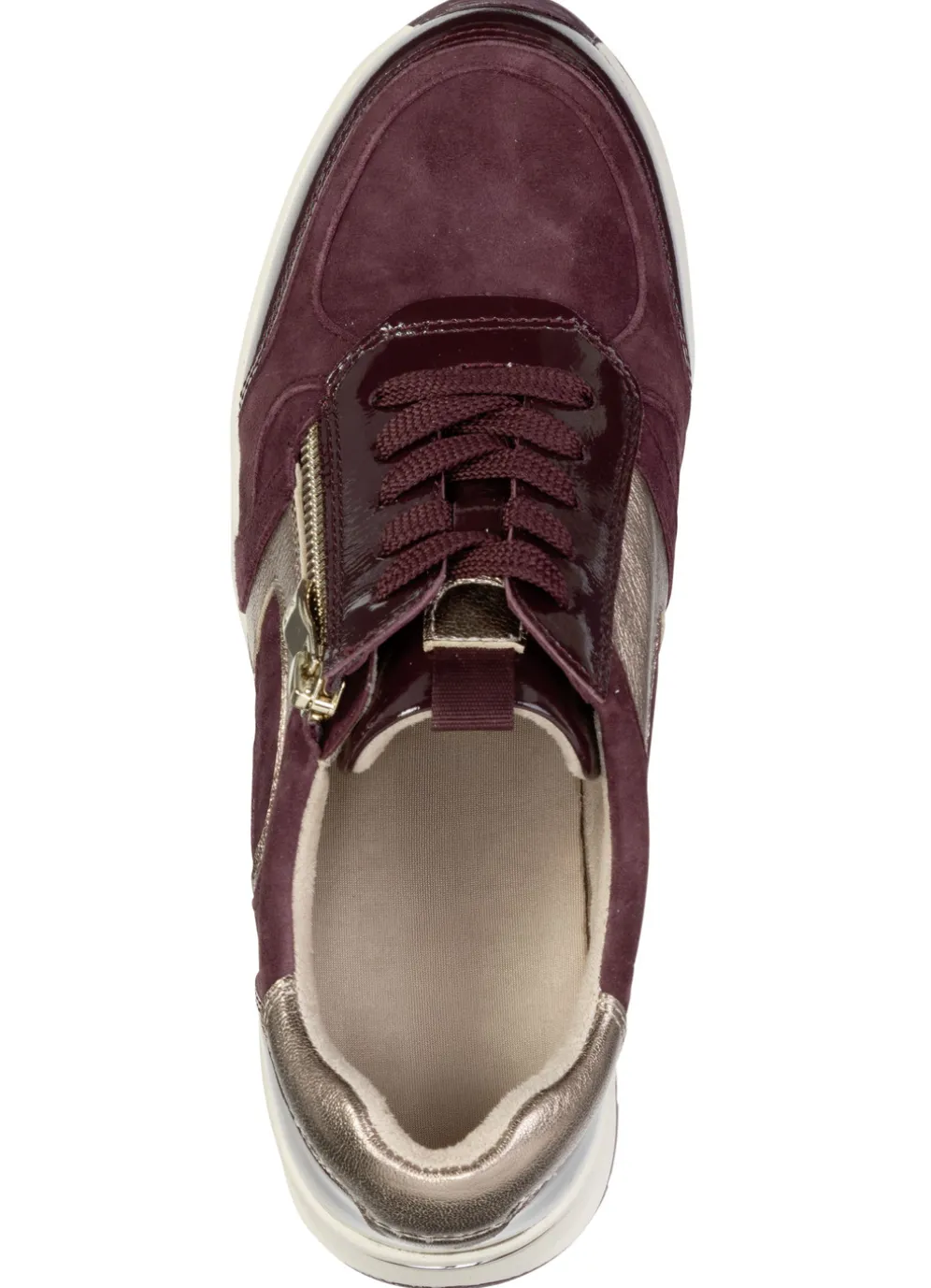 ELENA EDEN, sytlische Damen-Sneaker, Weite H, mit herausnehmbarem Fußbett in Bordeaux-Bronze und in Größe 38.