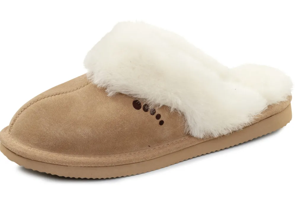 ELENA EDEN, warme Damen-Hausschuhe, mit Lammfell in Camel und in Größe 36.