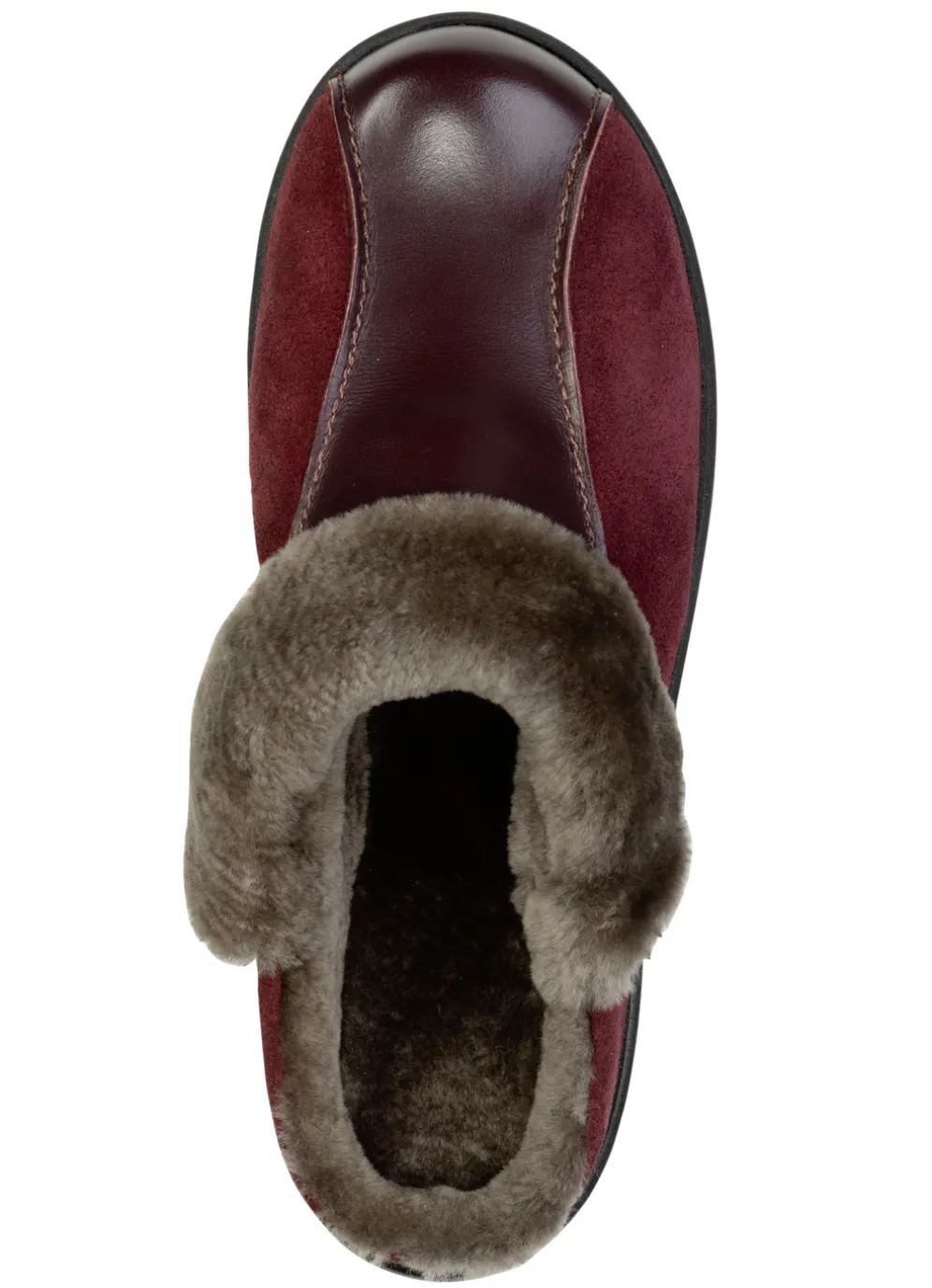 Hausschuhe von ELENA EDEN, aus Velours- und Nappaleder, mit Kragen sowie Futter und Fußbettbezug aus echtem, gewachsenem Lammfell: Weite H, leichte PU-Laufsohle sowie 25 mm Keilabsatz