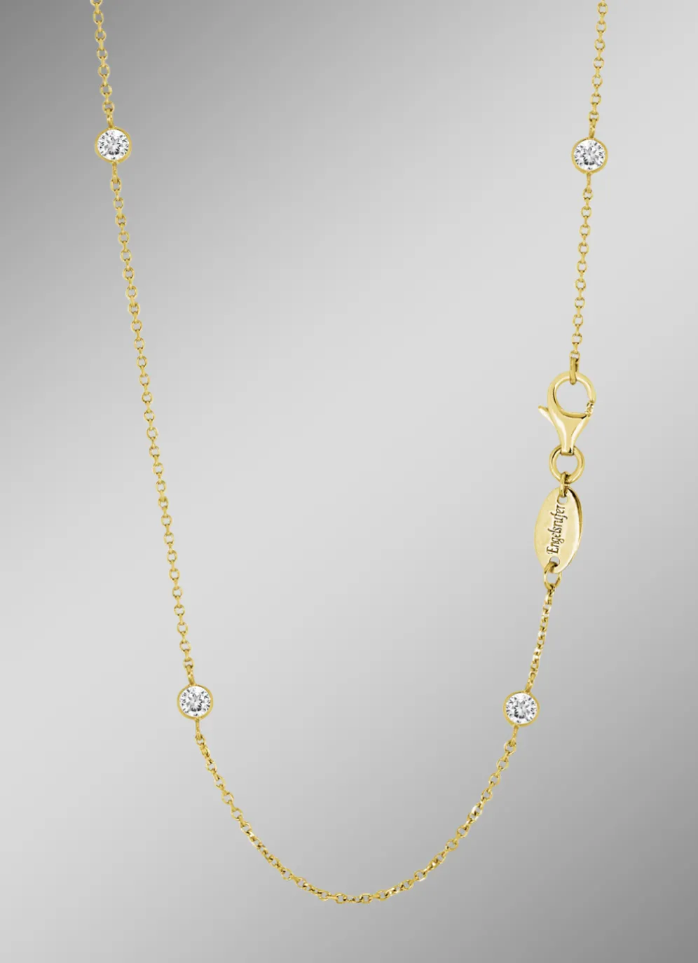 Diese 80 cm lange vergoldete Kette wird durch ihre dezent eingearbeiteten 14 weißen Zirkoniasteine gekonnt in Szene gesetzt. Die Steine tauchen die Kette in ein magisches Licht und lassen sie an Ihrem Hals elegant funkeln. Vollendet wird der edle Halsschmuck durch einen Karabinerverschluss.