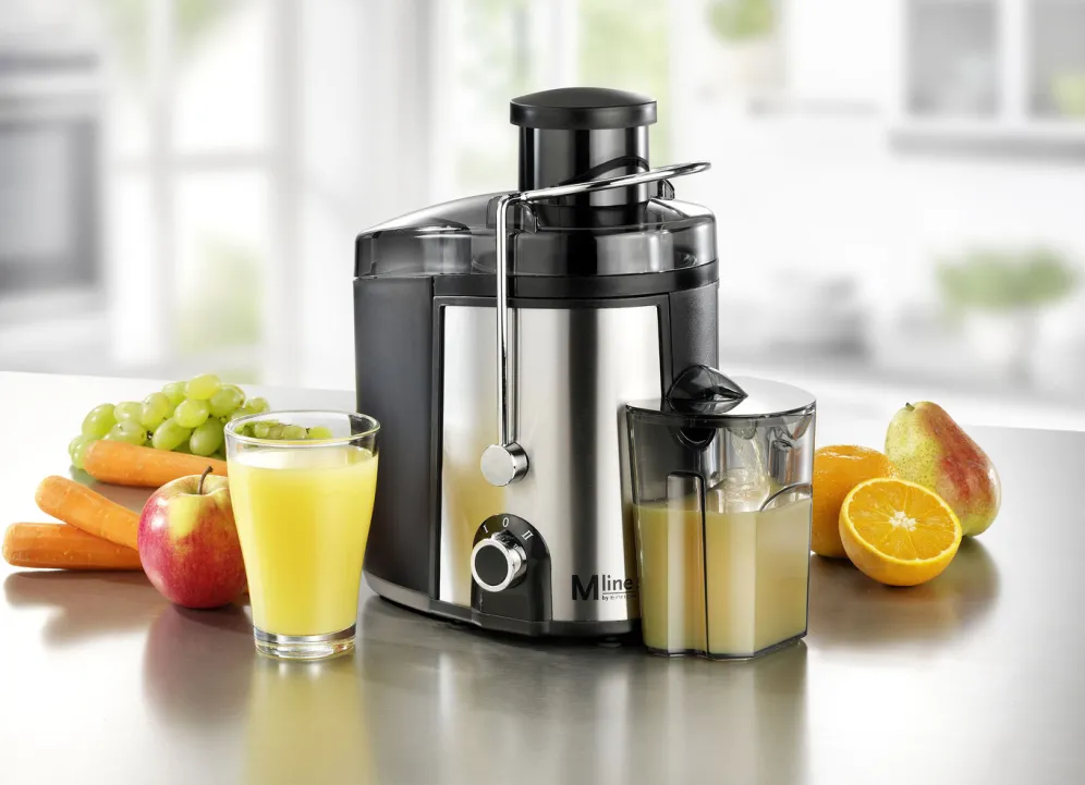 Entsafter mit großer Einfüllöffnung für die schnelle Zubereitung von frischen Obst- und Gemüsesäften mit kontinuierlicher Nachfüllmöglichkeit. Ein Vorschneiden der Früchte ist nicht notwendig, da die Einfüllöffnung groß genug ist – es passen ganze Äpfel und Tomaten rein. 2 Geschwindigkeitsstufen für hartes und weiches Obst/Gemüse. Ohne Kraftaufwand. Einfache Bedienung.