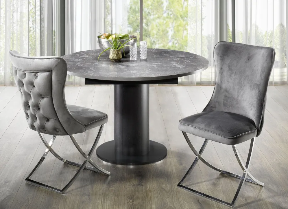 Esstisch mit Auszug in Schwarz-Keramik Dunkel.