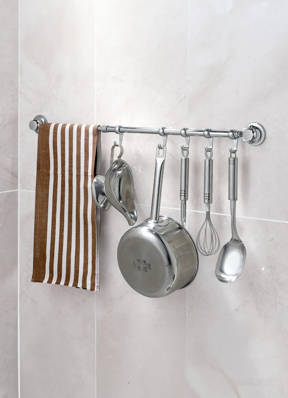 Stange mit 5 integrierten Haken: Für Küchenhelfer oder Handtücher. Maße: 61x5x5 cm