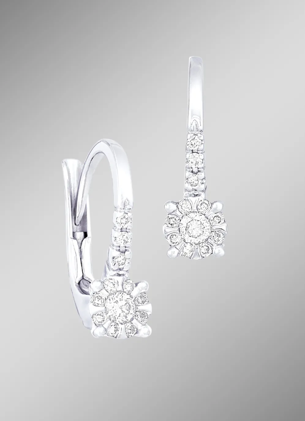 Die 24 Brillanten, zusammen ca. 0,14 ct., Weiß, Piqué 2, funkeln wie Sterne in der Nacht. Der Ohrschmuck ist 12 mm lang
