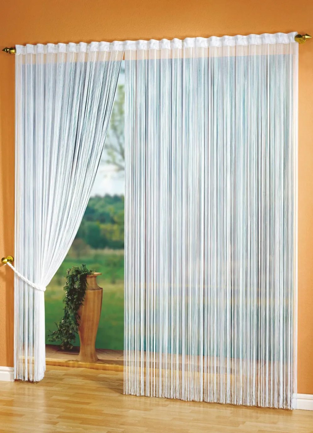 Fadenstore für Gardinenstange und -schiene in Größe 305 (H160xB 98 cm) und in Weiss.