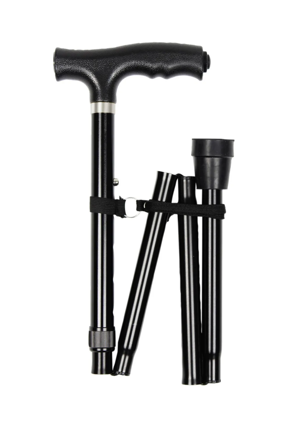 Faltbarer Gehstock mit LED-Licht in Schwarz.