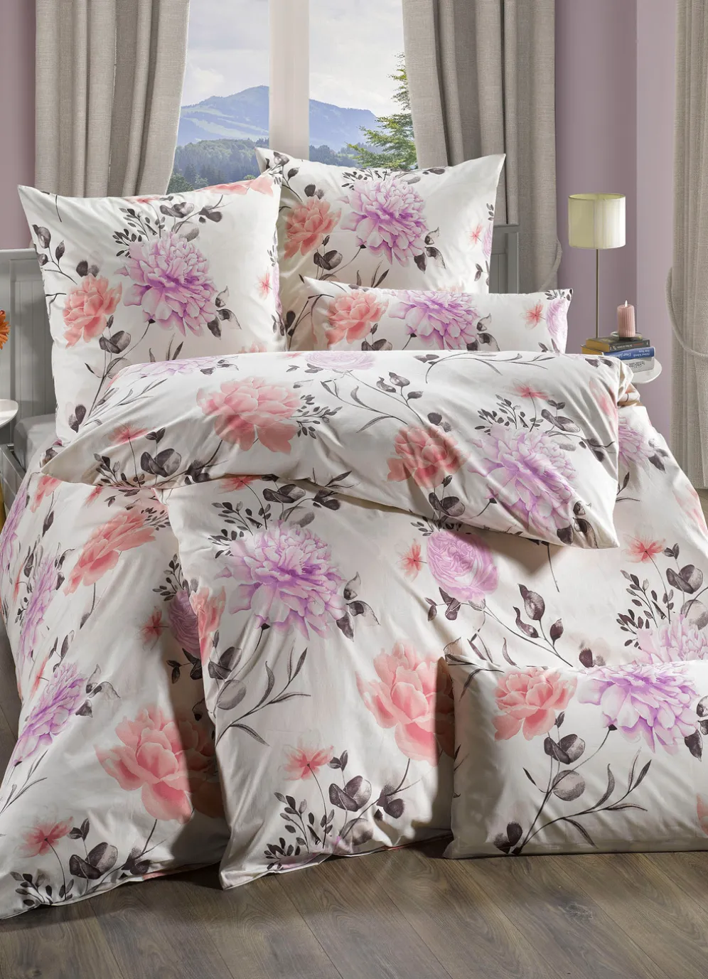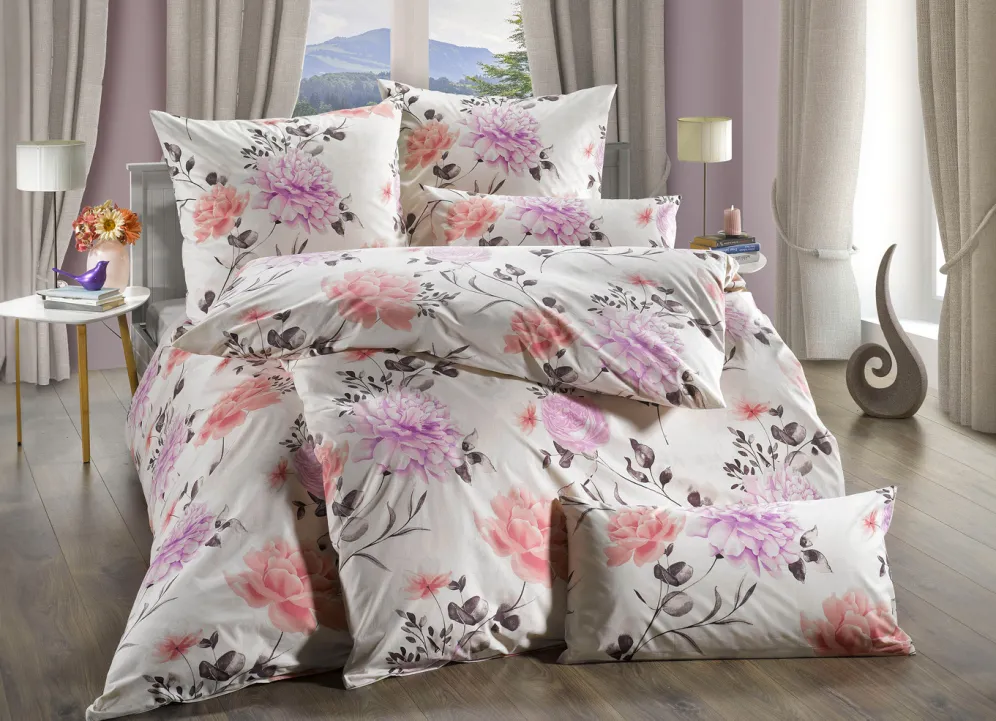 Zauberhafte Blüten verleihen dieser beidseitig bedruckten Bettwäsche-Garnitur von Florella eine wunderbar leichte Optik. Mit praktischem Reißverschluss. Die Qualität: Fein-Renforcé aus 100% Baumwolle. Waschbar bis 60 °C und trocknergeeignet.