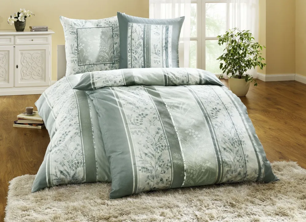 Feinbiber Bettwäsche-Garnitur mit praktischem Reißverschluss in Größe 112 (80×80 cm + 135×200 cm) und in Jade.