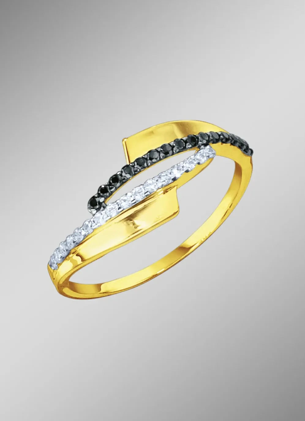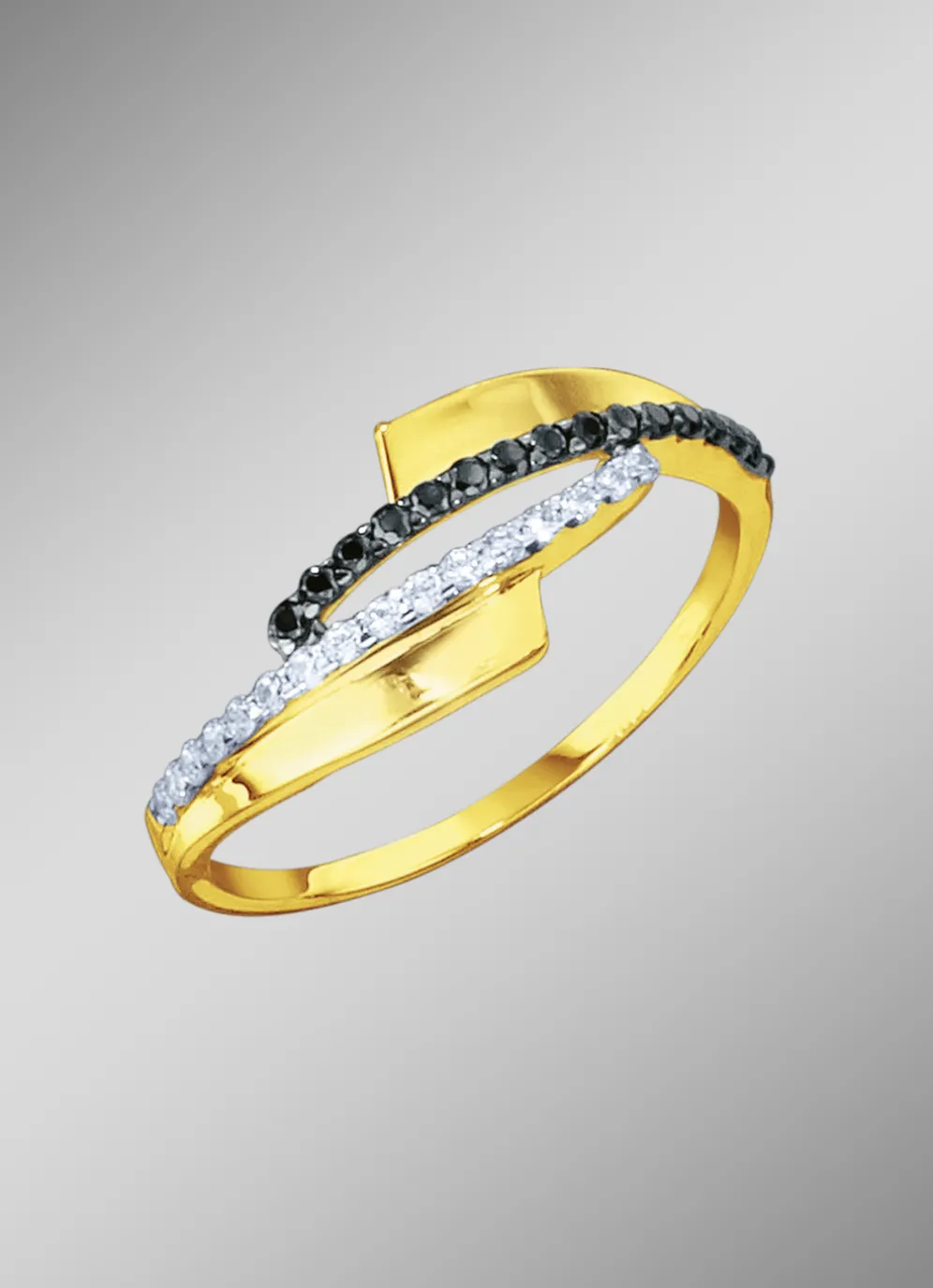 Schöner Damenring mit synth. Zirkonia in Schwarz und Weiß. Sie erhalten diesen Ring mit einer Ringkopfbreite von 8 mm in Gold 585/- fein oder Gold 333/- fein. Ein edles Schmuckstück für die Ewigkeit.