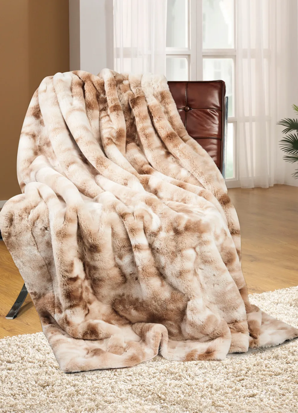 Felldecke aus naturgetreuem Webpelz in Beige.