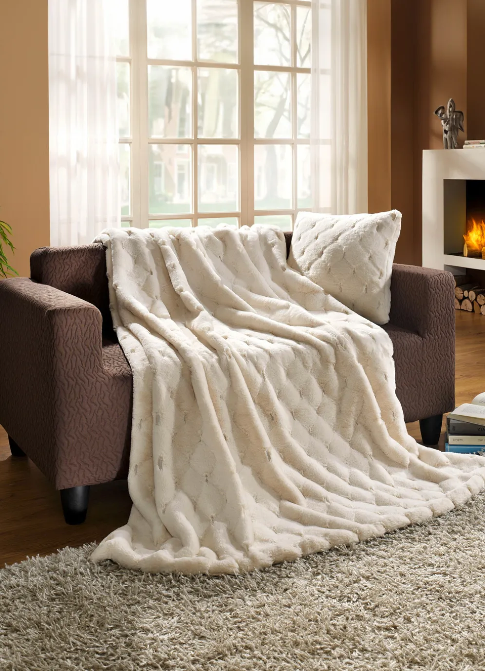 Felldecken und Kissen aus natürlich wirkendem Webpelz-Fellimitat