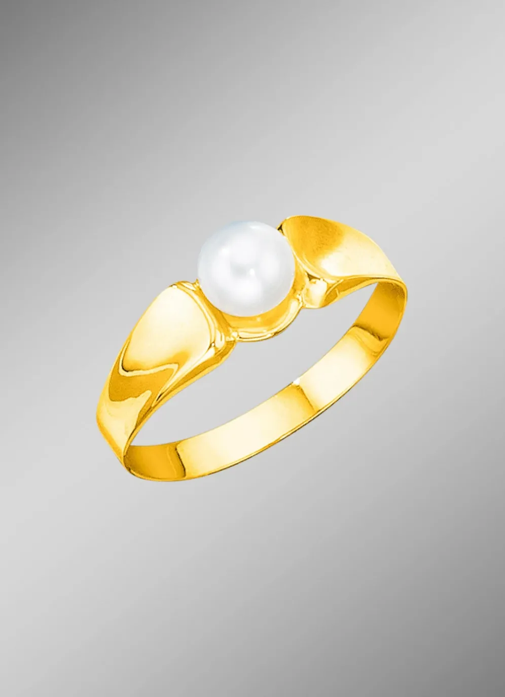 Dieser Damenring, den Sie wahlweise aus Gold 585/- fein oder Gold 333/- fein erhalten, überzeugt durch das schlichte Design und die tolle Verarbeitung. Die 6 mm große Süßwasser-Zuchtperle verleiht dem Ring das Gewisse Etwas.