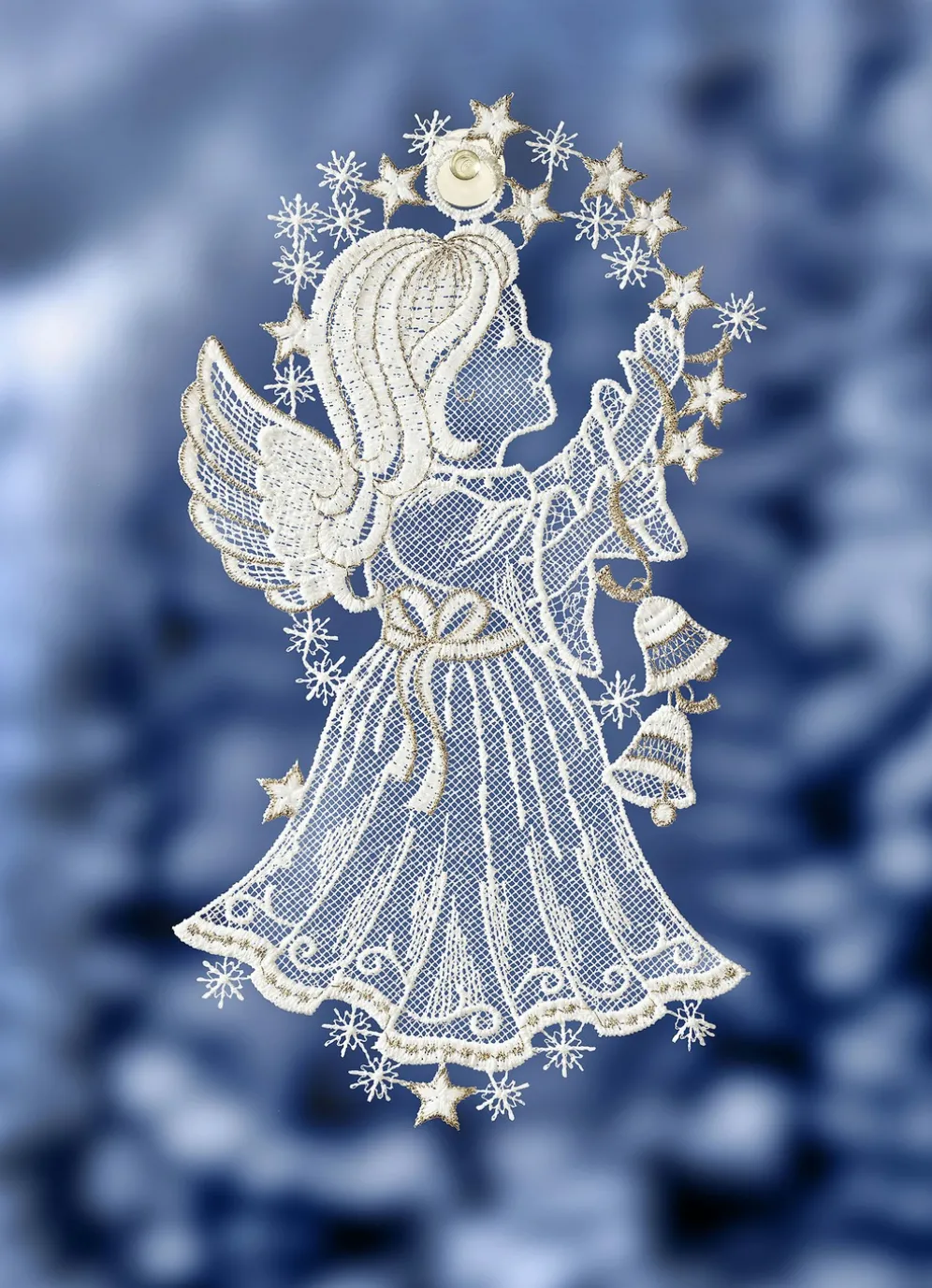 Fensterbild Engel aus Plauener Spitze