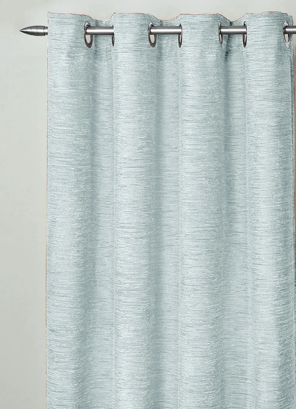Fensterdekoration aus schwerer Thermo-Chenille-Qualität in der Ausführung mit Universalschienenband, in Größe 364 (H150xB135 cm) sowie in Hellblau.