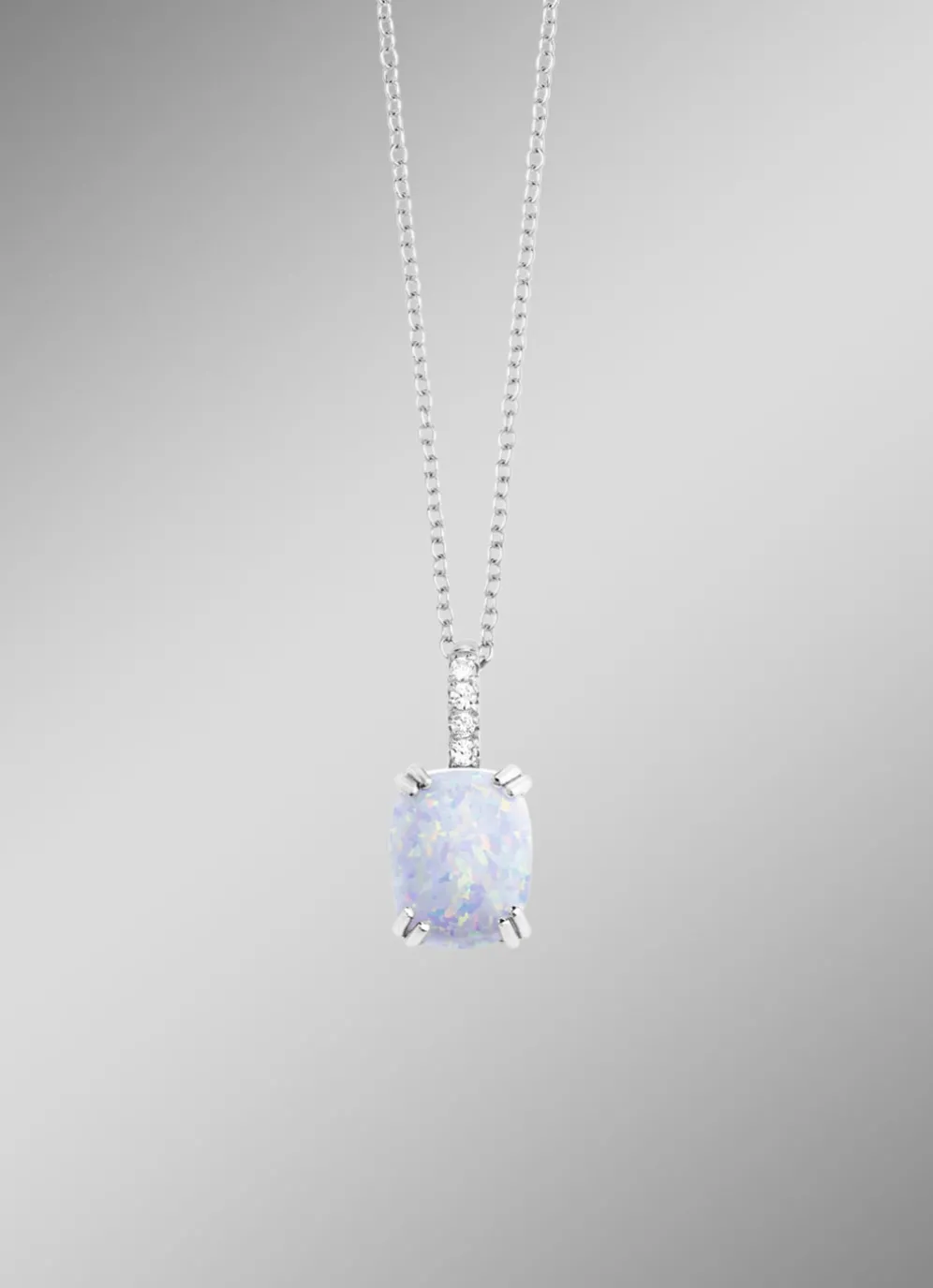 Eleganz trifft auf zeitlose Schönheit: Der filigrane Anhänger aus hochwertigem Silber 925/-fein besticht durch seinen synthetischen Opal und strahlende synthetische Zirkonia-Steine. Mit einer Länge von 18 mm und kombiniert mit einer Ankerkette (42 cm + 3 cm Verlängerung) ist dieses Schmuckstück ein echter Hingucker. Der praktische Karabinerverschluss sorgt für sicheren Halt.