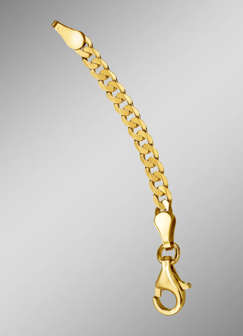 Die geschliffene Flachpanzerkette ist aus Gold 585/- fein oder aus Gold 333/- fein erhältlich.