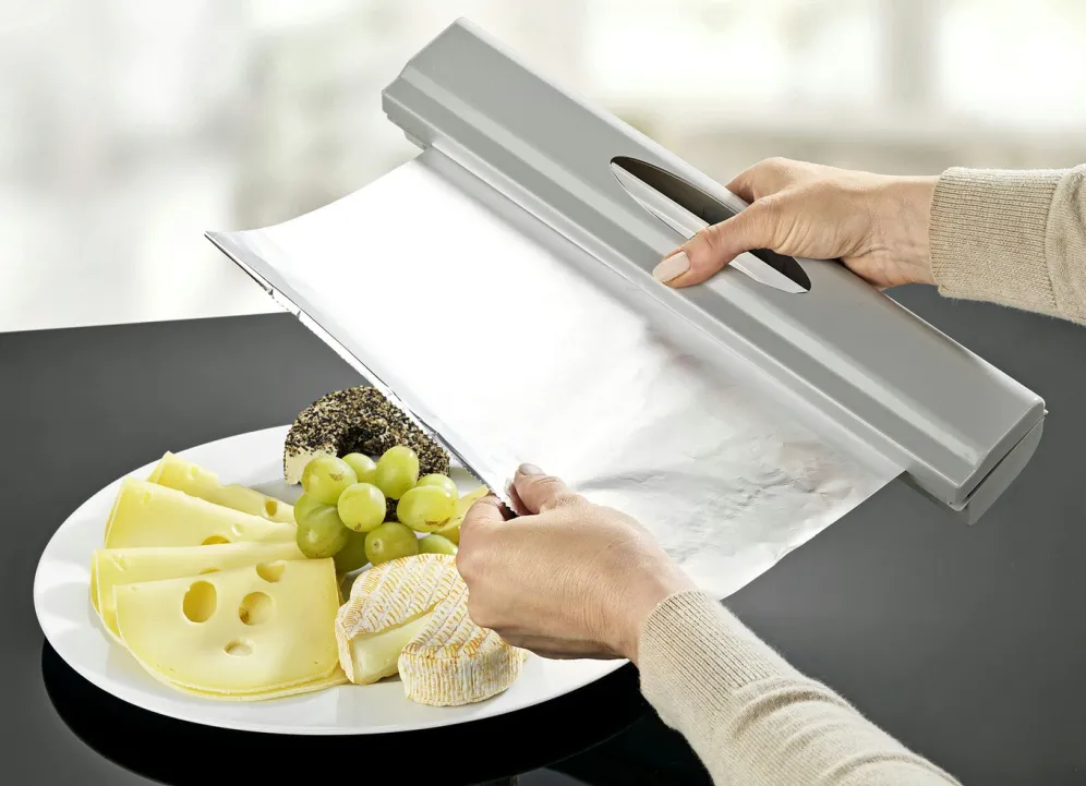 Folienspender mit Federmechanismus. Kinderleicht zu bedienen. Einfach Folie herausziehen, auf Spannung halten und den Spender zusammendrücken. Die fein gezahnte Edelstahl-Klinge im Deckel trennt sie sauber ab. Deckel mit Sichtfenster. Für alle handelsüblichen Rollen bis 33 cm Breite. Ideal zum Aufbewahren in der Schublade.
