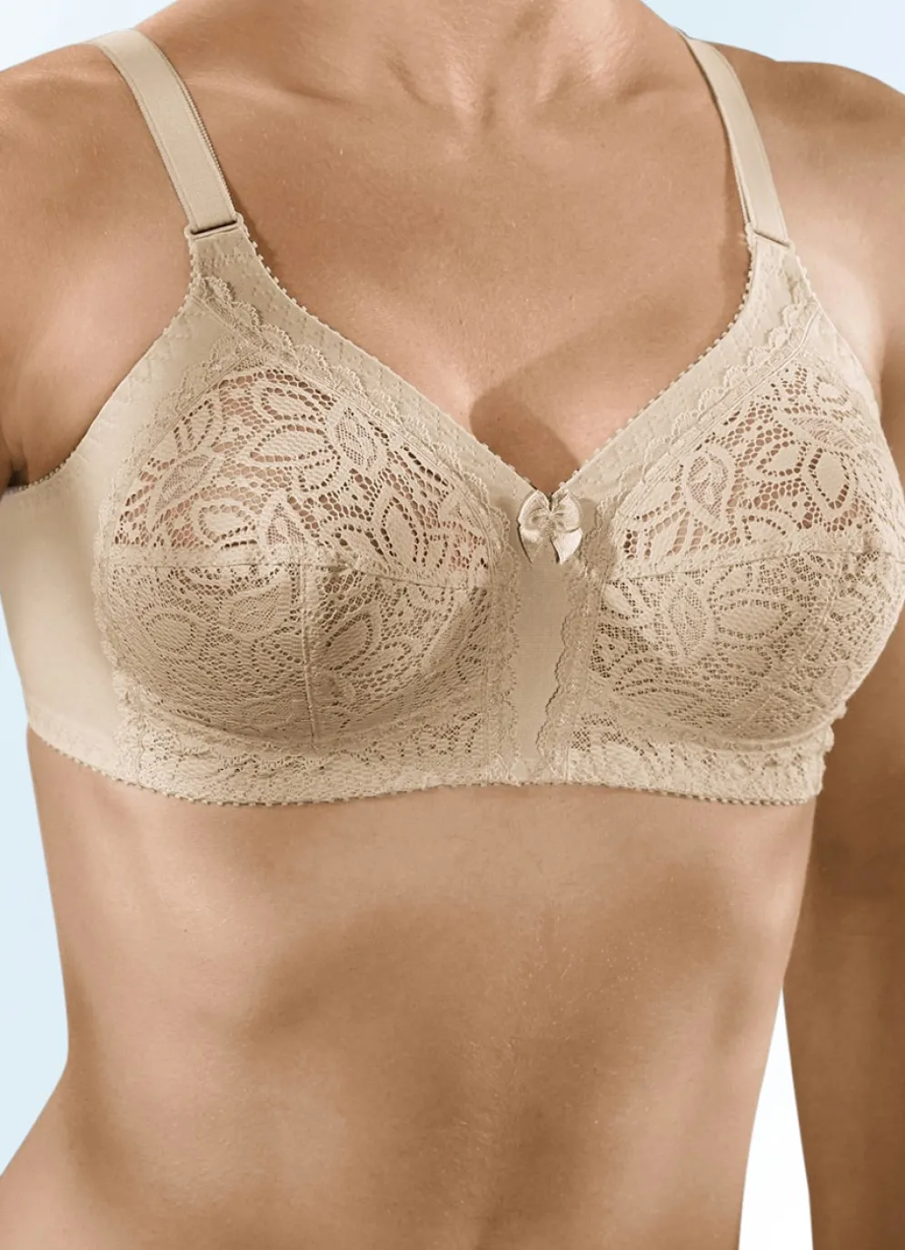 Format BH mit Spitze im Vorderteil in Cup E, in Haut sowie in Größe 75.