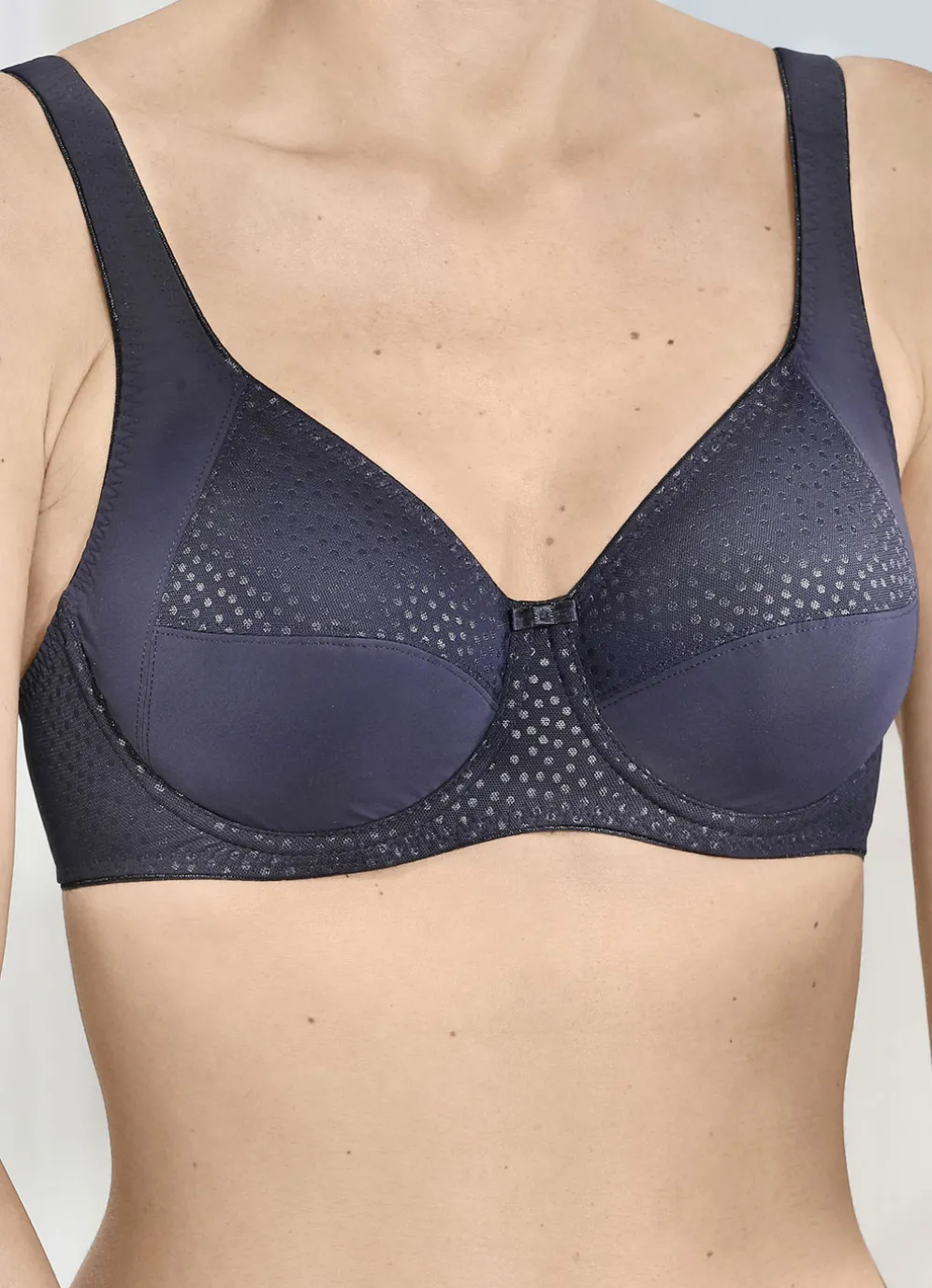 „Format“-Bügel-BH in Marine, mit dezent glänzendem Jacquarddessin, unterlegtem Vorderteil, verstärktem Rückteil sowie verstellbaren Stretchträgern.