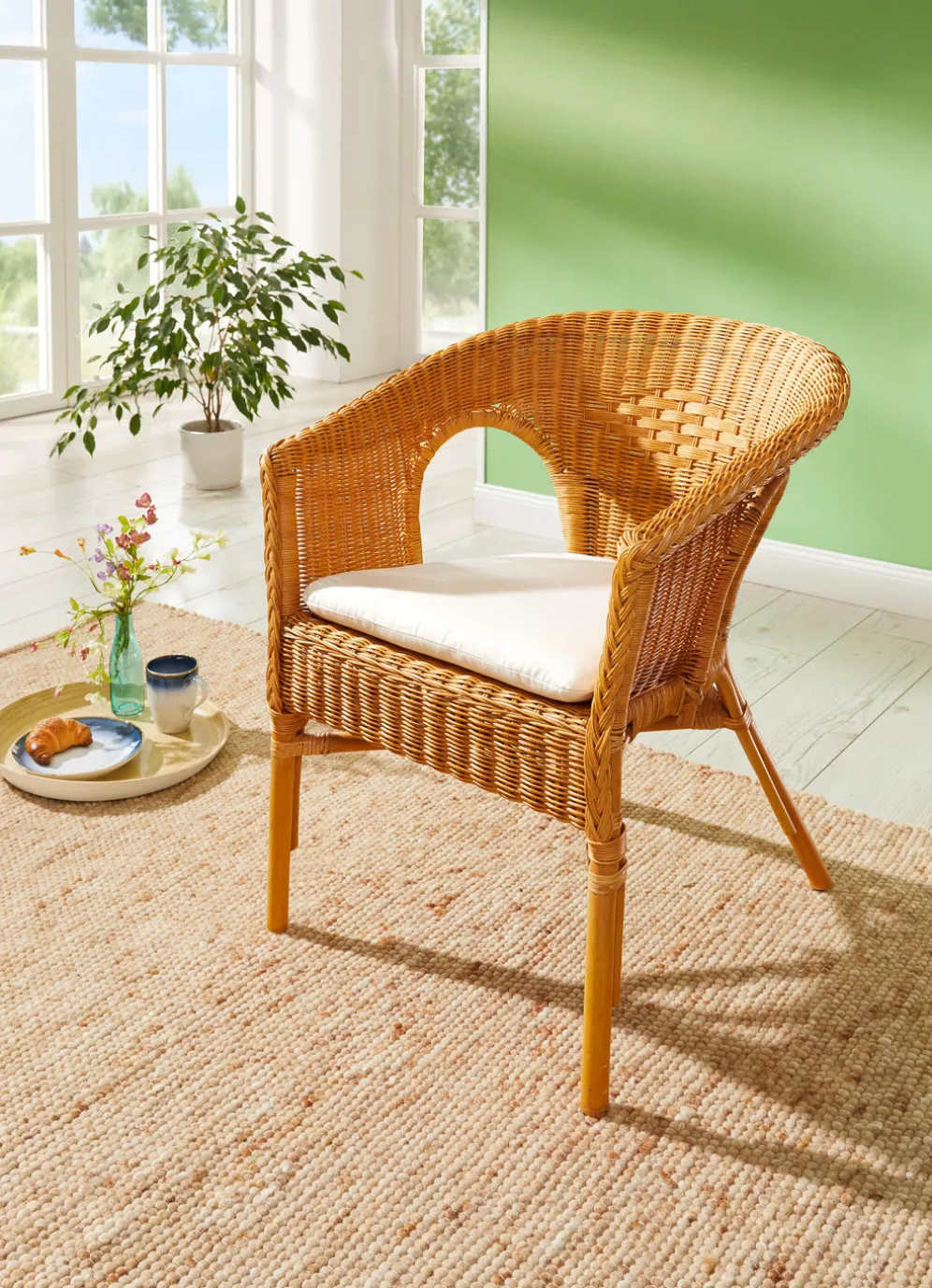 Formschöner Rattansessel aus Peddigrohrgeflecht