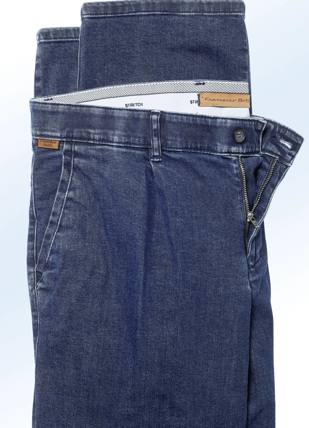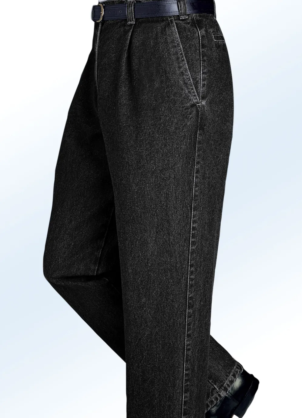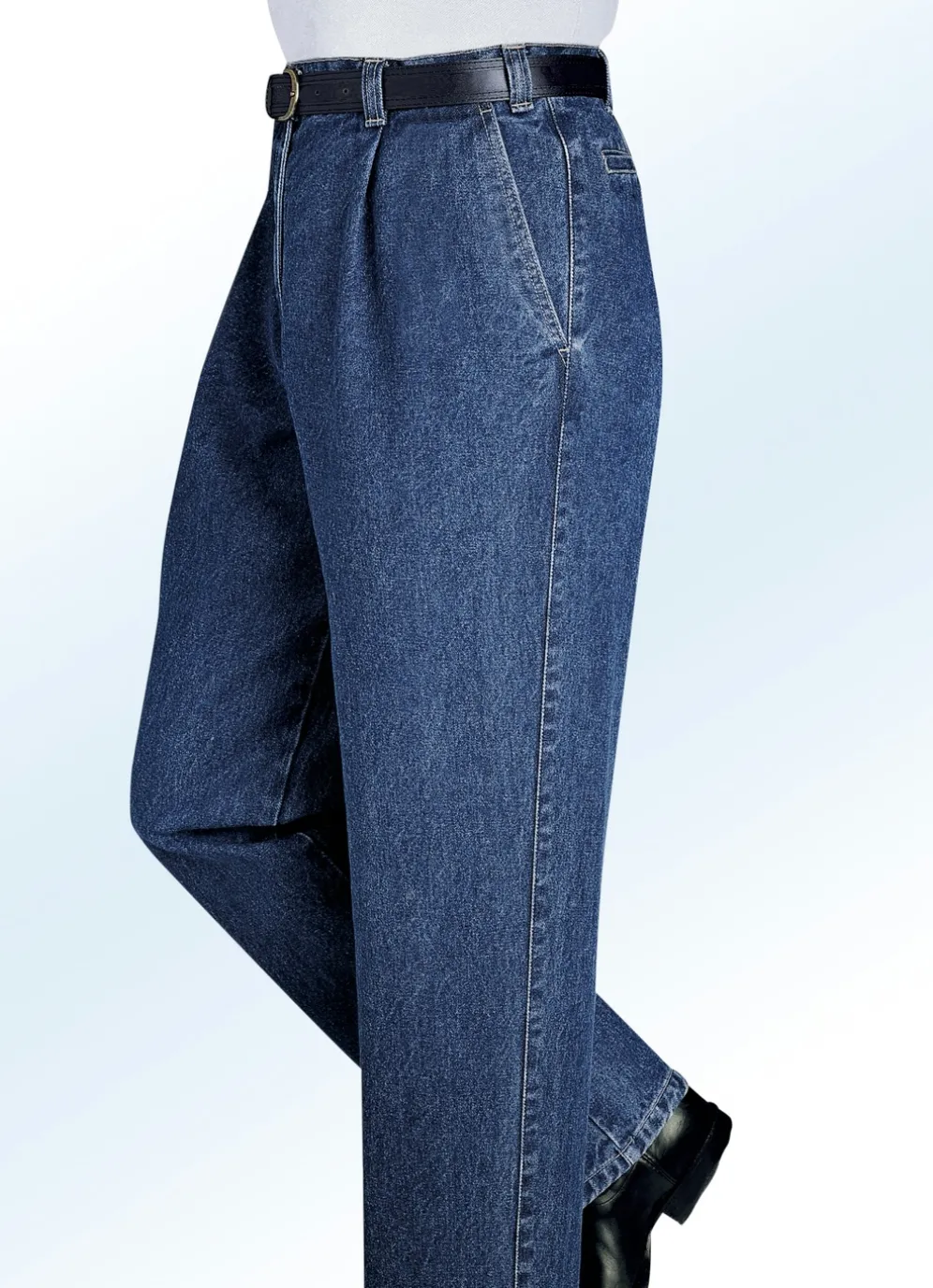 In zwei interessanten Variationen lieferbar: tolle „Francesco Botti“-Jeans mit Gürtel, Bundfalten sowie Seitentaschen
