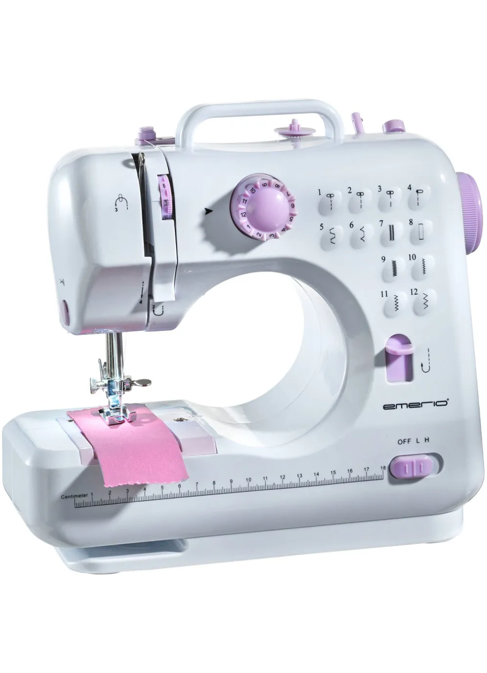 Freiarm-Nähmaschine. Mit 12 Nähprogrammen. Geradstiche, Zierstiche, Blindstich, Knopf- und Knopflochstich und Zickzackstiche. Mit Vor- und Rückwärtsautomatik und 4-Stufen Knopflochautomatik. Einfach zu bedienen. Ideal zum Annähen von Reißverschlüssen, für Jeans, Einlegesohlen, Taschen, Vorhänge uvm. Variable Einstellung der Stichlänge. Optimale Durchstichkraft. Automatische Fadenspannung und Schnelleinfädelsystem. Automatisches, vertikales Spulensystem. Schlanker Freiarm ideal für Ärmel oder Hosenbeine. Blendfreies LED-Nählicht. Mit Tragegriff und Fußanlasser. Flexibel einsetzbar mit Netzstecker oder im Batteriebetrieb (4x AA, nicht im Lieferumfang enthalten). Schublade für Zubehörteile. Zubehör: 4 Garn-Spulen, 1 Nadel und 1 Einfädelhilfe.