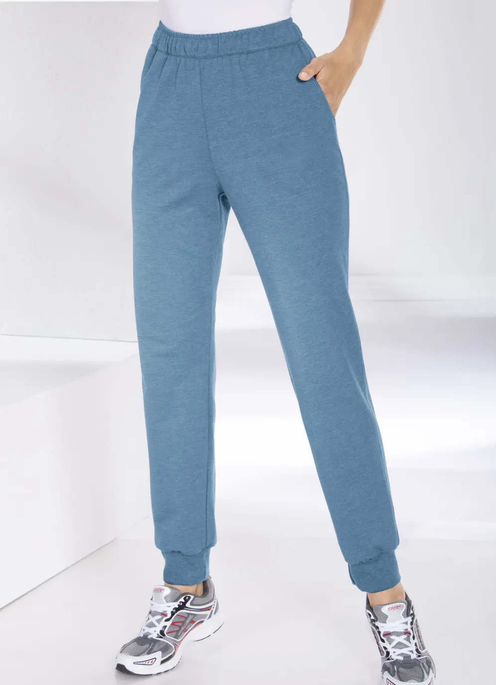 „Athlet”-Freizeithose: Dehnbund mit Druchzugsband, Seitentaschen sowie elastischen Beinabschlüssen.