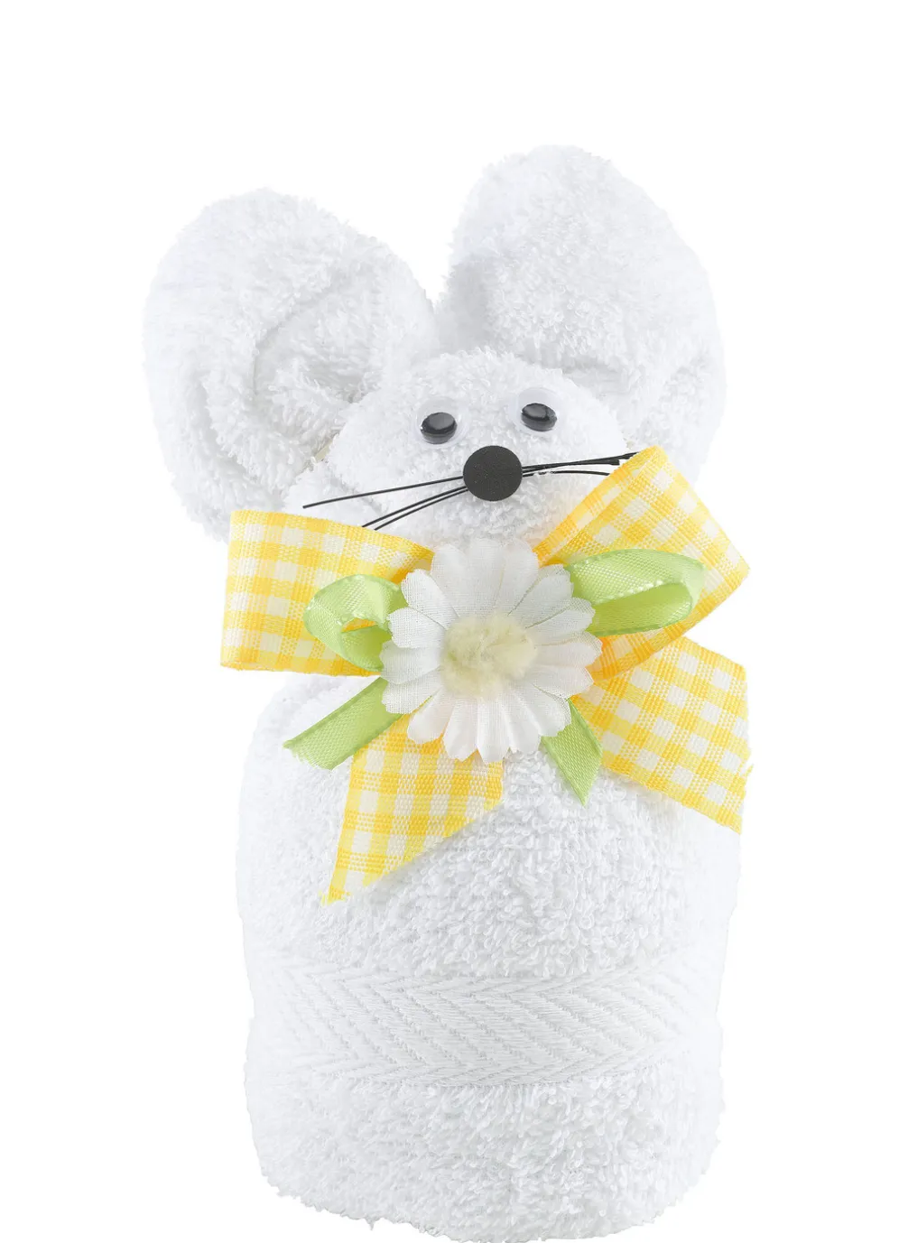 Eine fantastische Geschenkidee ist diese kuschelweiche Frottier-Frühlingsmaus, bestehend aus 1 Gästehandtuch (30×50 cm) und passendem Deko-Zubehör.