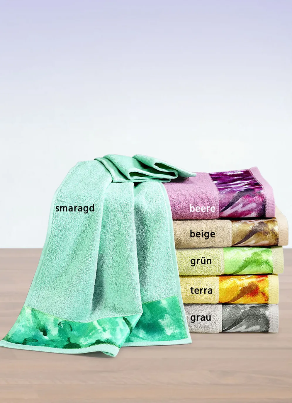 Für Ihre persönliche Wohlfühl-Oase zu Hause ist diese hochwertige Frottier-Serie mit wunderschön bedruckter Bordüre ideal! Die Qualität: Frottier aus 100% Baumwolle. Waschbar bis 40 ° C und trocknergeeignet
