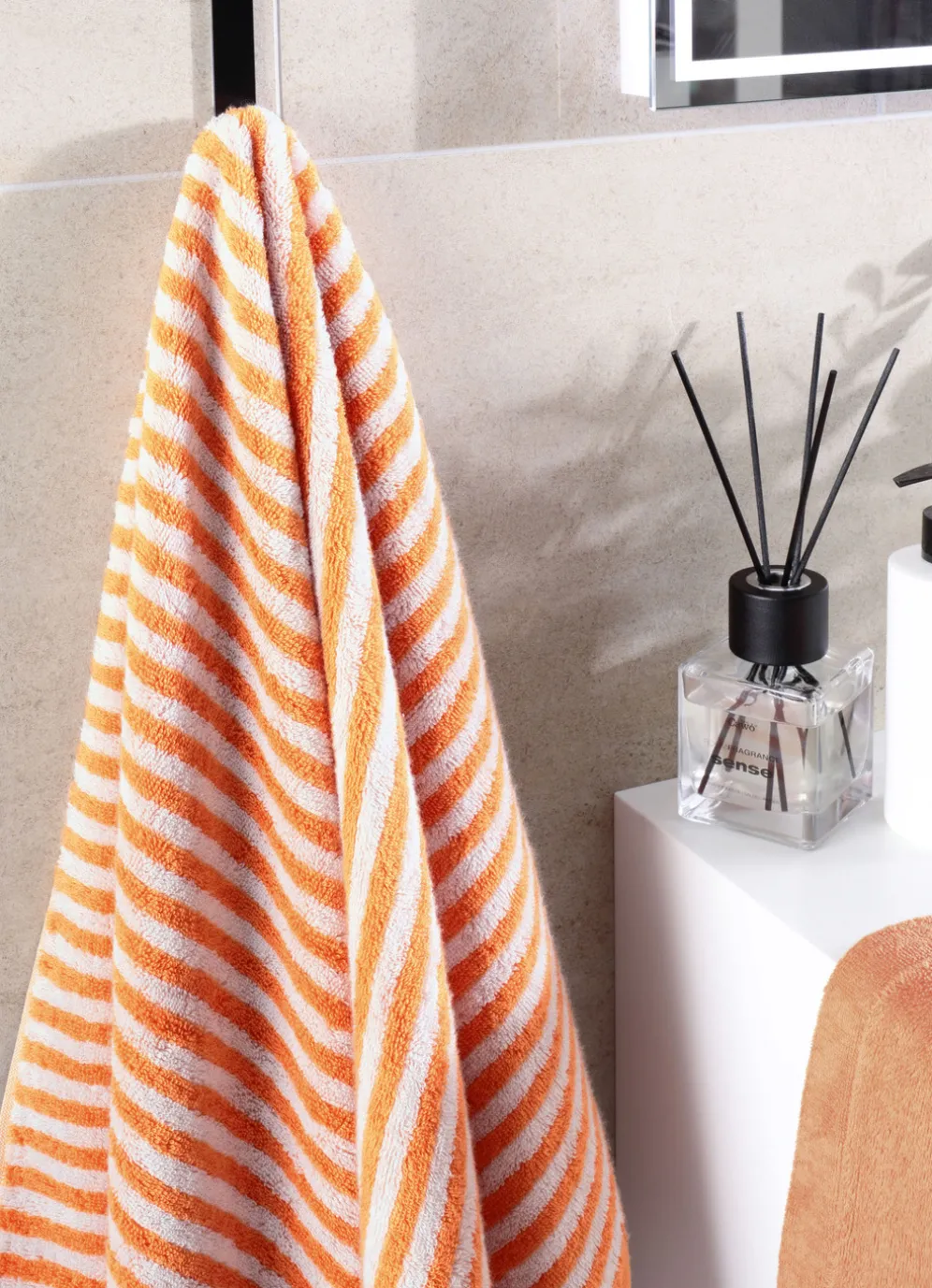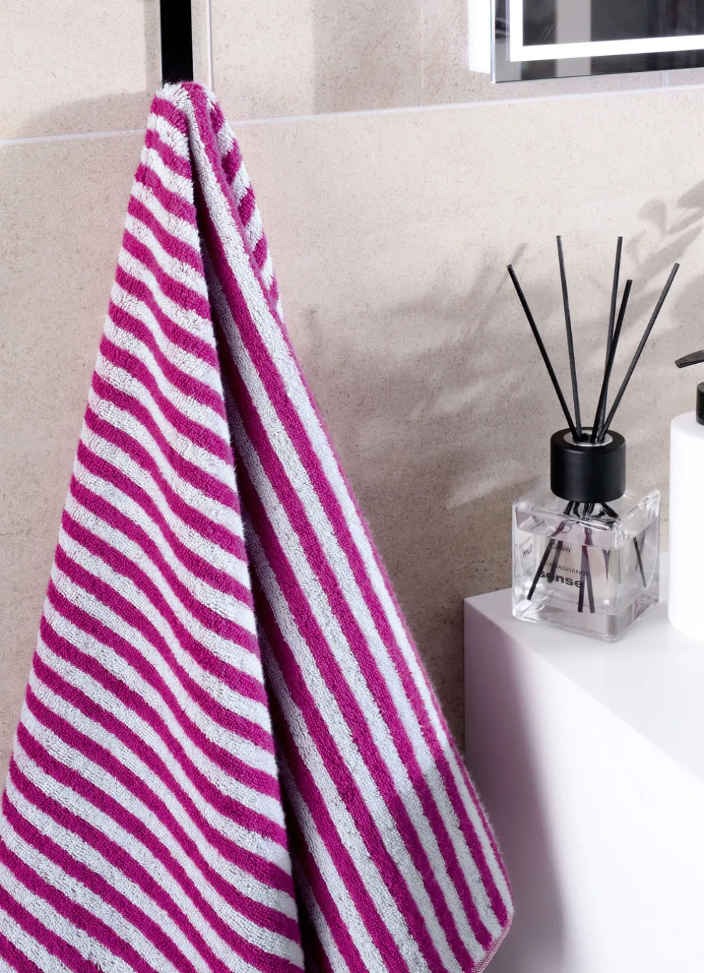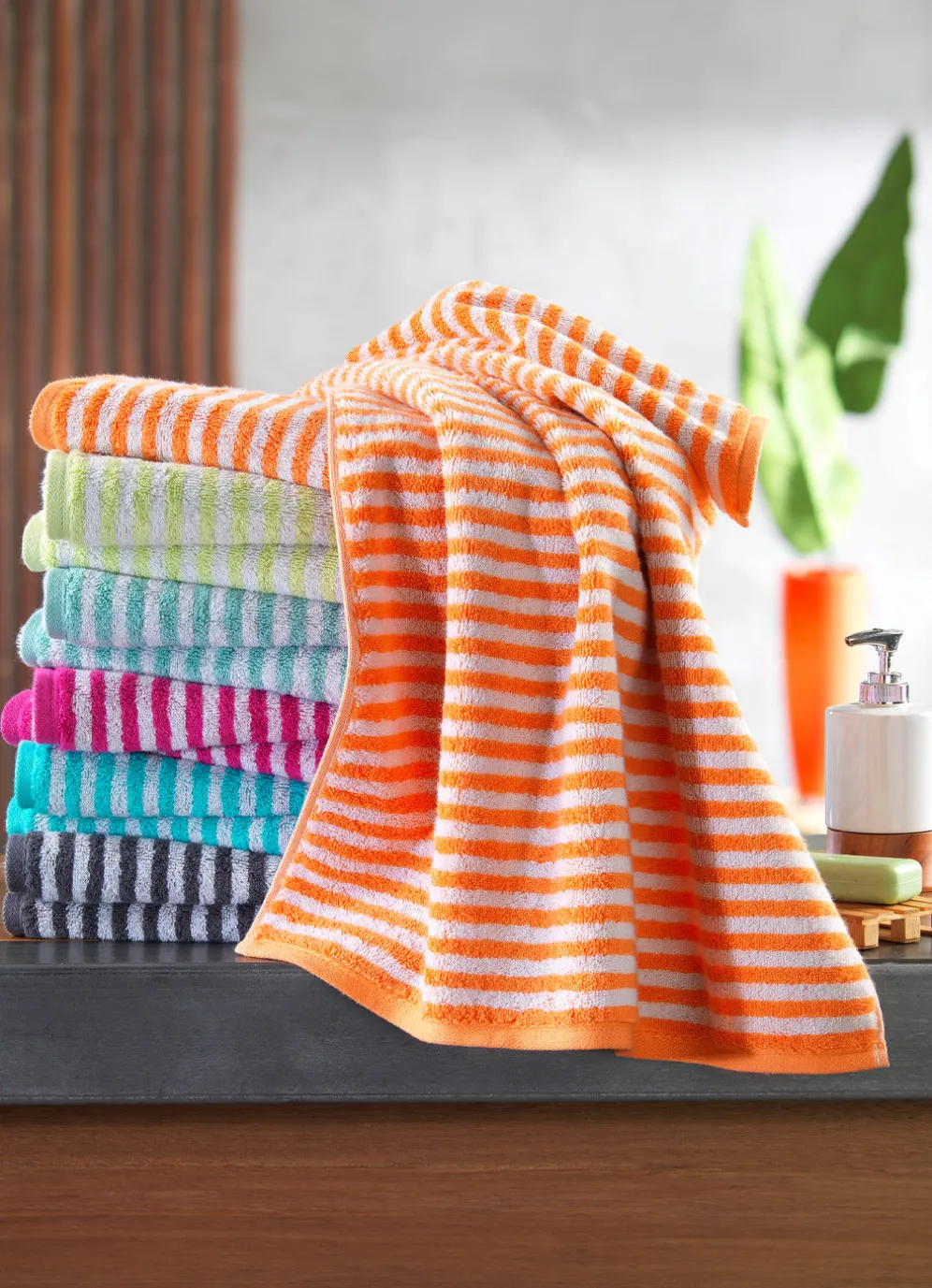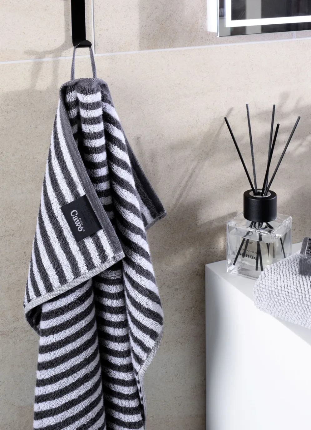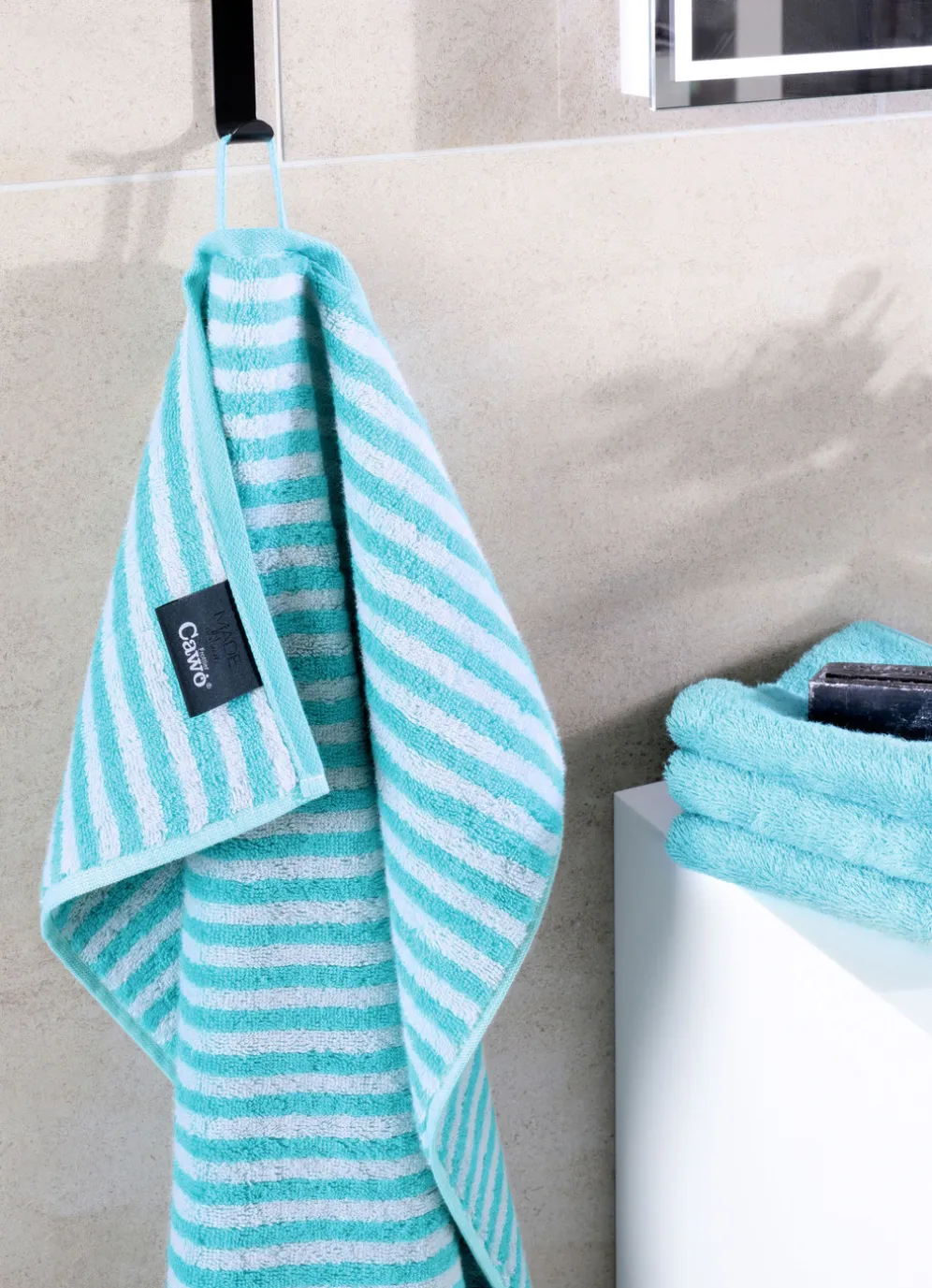 Stilvolle Akzente in Ihrem Badezimmer setzen Sie mit dieser schönen Frottier-Serie von Cawö in eindrucksvoller Streifen-Optik. Die saugstarke, weiche Baumwollqualität trocknet ausgezeichnet, ist pflegeleicht und eignet sich bestens für den täglichen Gebrauch. Die farblich passende Aufhängekordel rundet die Serie stilvoll ab. Die flauschige Qualität: 100% Baumwolle. Waschbar bis 60 °C und trocknergeeignet.