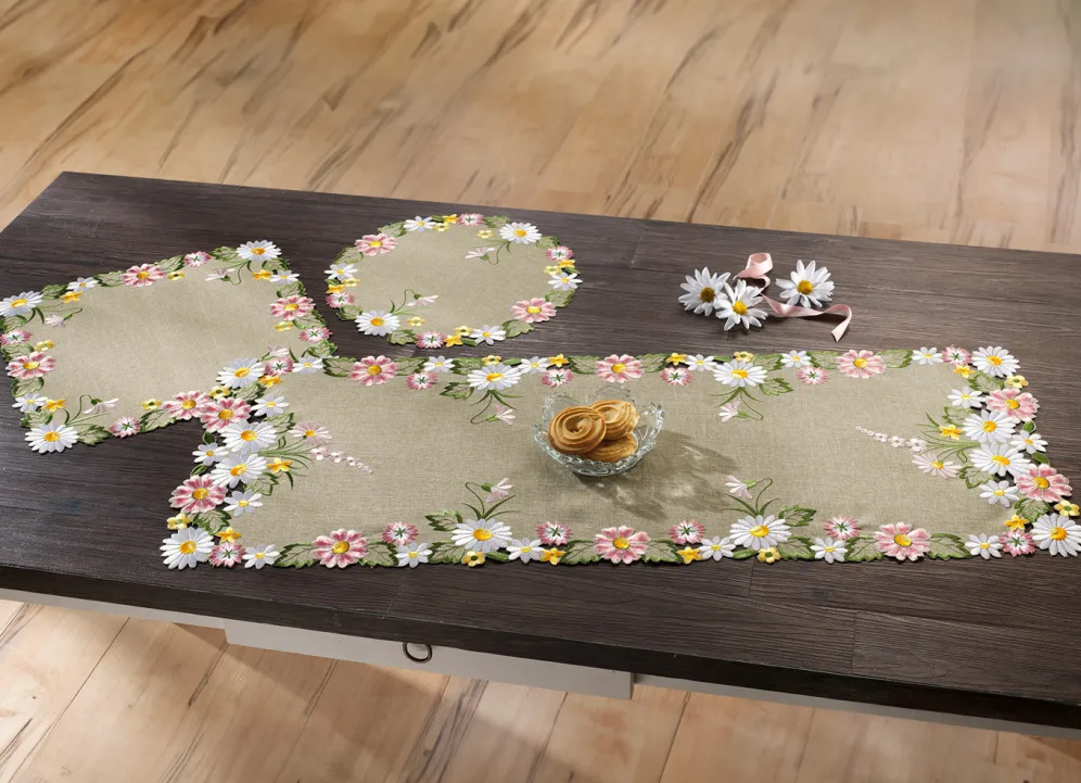 Frühlingshafte Tisch- und Raumdekoration in Größe 300 (Deckchen rund, ø 35 cm) und in Bunt.