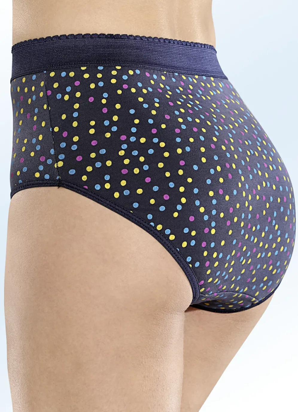 Fünferpack Formslips mit buntem Punktedessin in Marine-Bunt und in Größe 38.