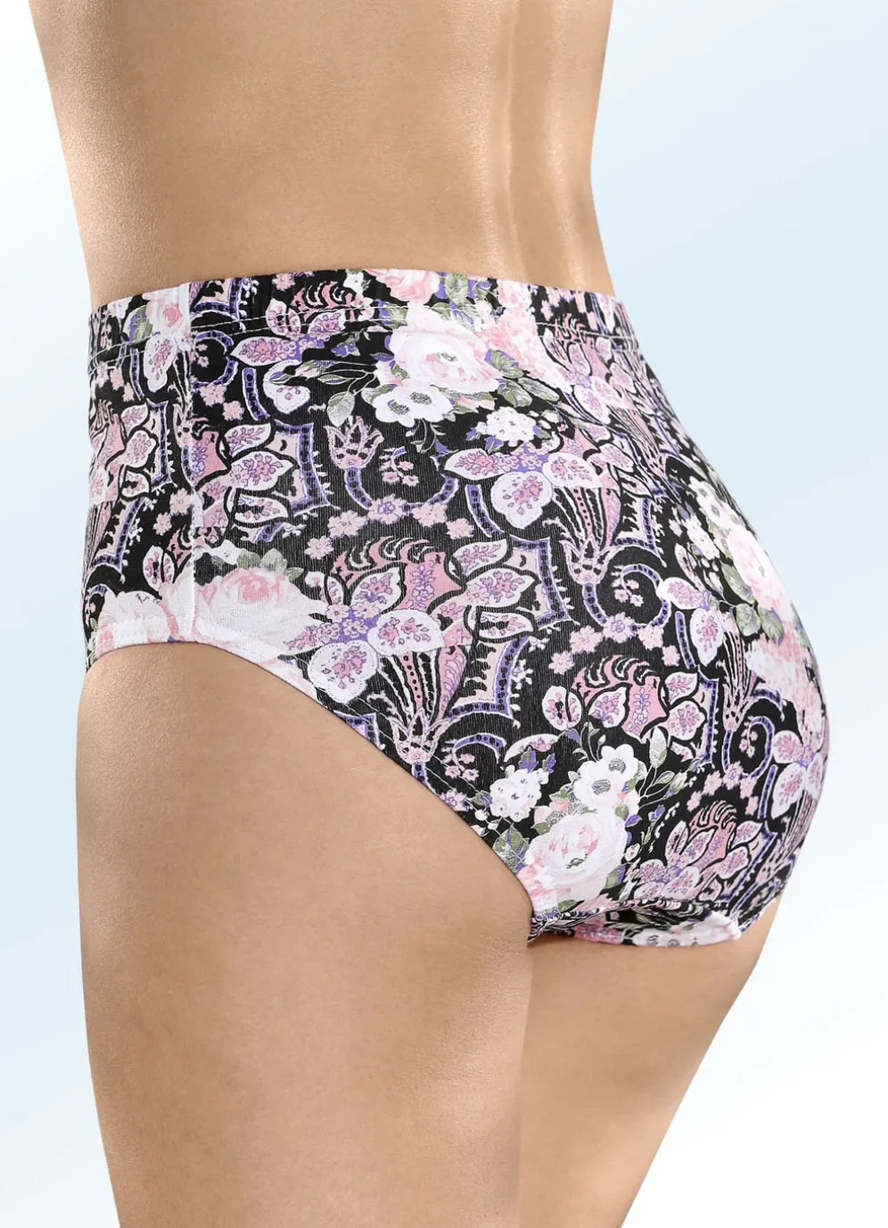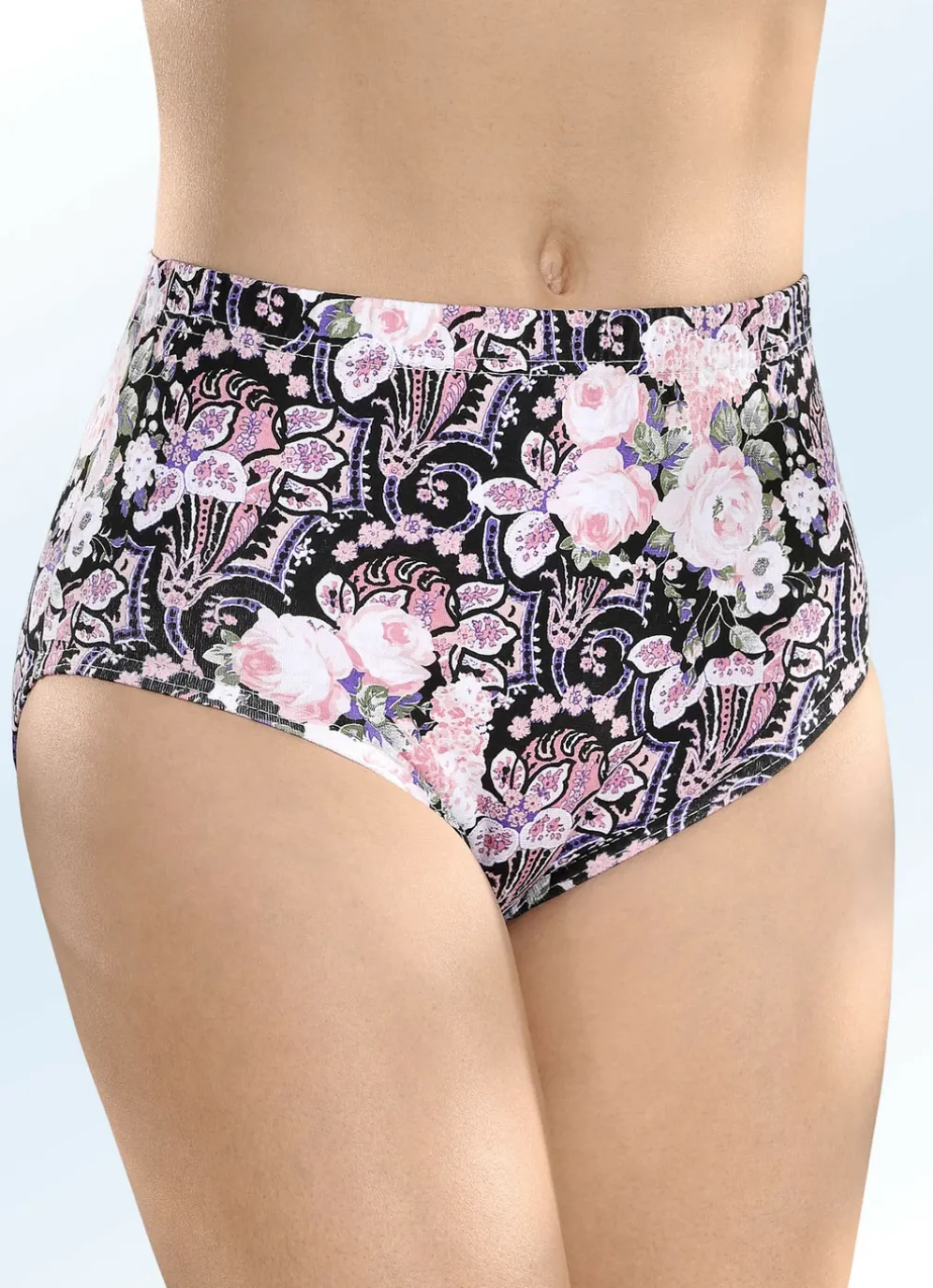 Schwarz-rosé-bunt dessinierter Slip mit Gummizug im Bund.