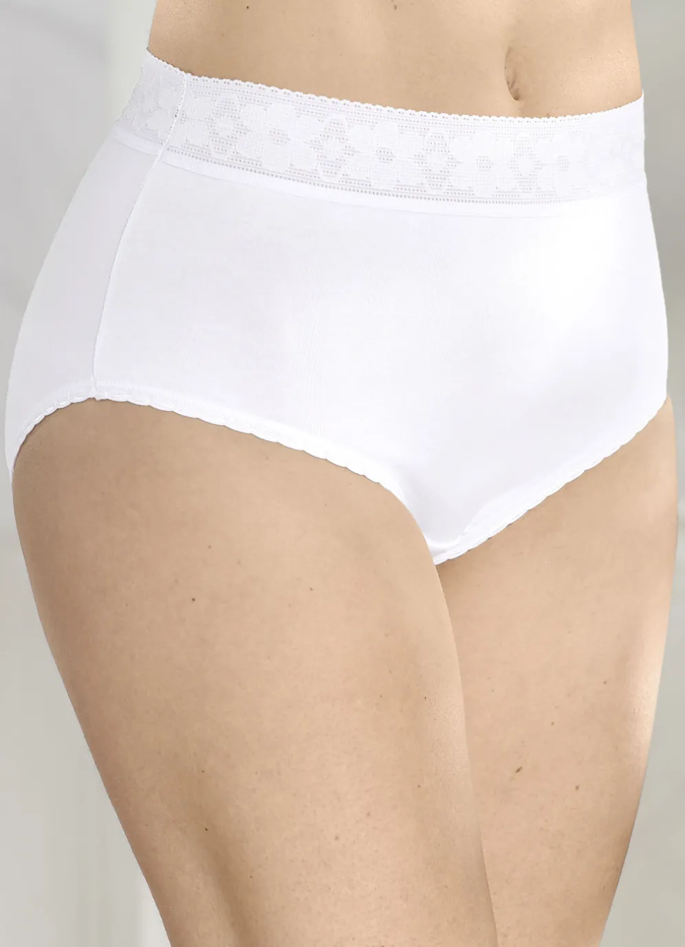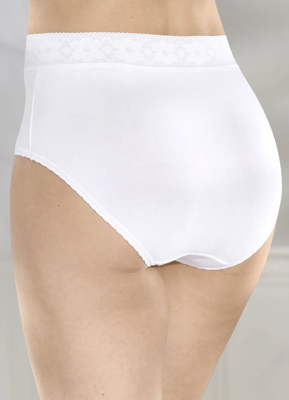 Fünferpack Slips mit Elastikspitzenbund in Weiss und in Größe 42.